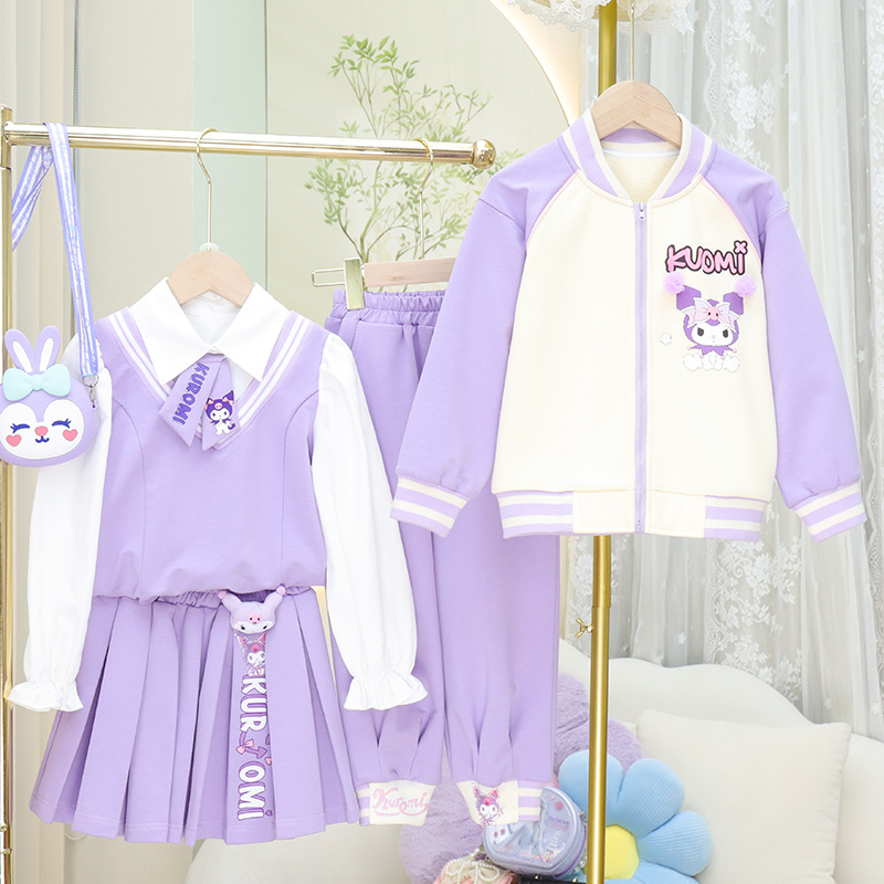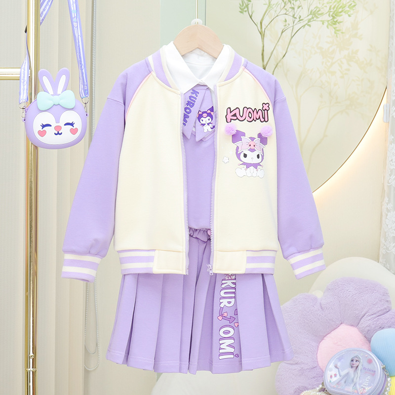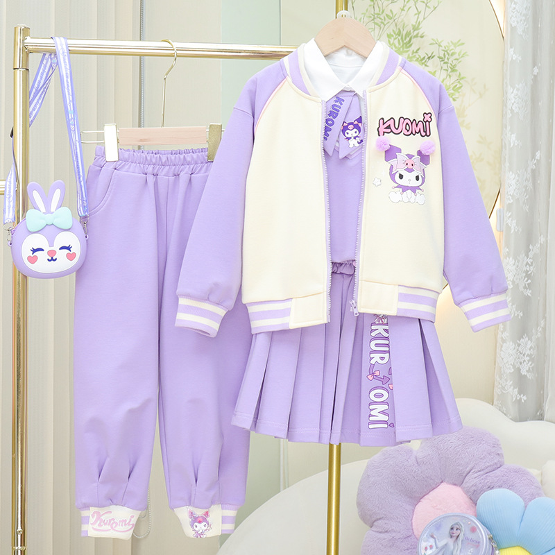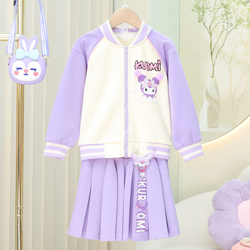 가을과 겨울 2024 여자 기모 두꺼운 코트 3 조각 세트 아이들의 세련된 패션 세트 주름 치마스토어 가기