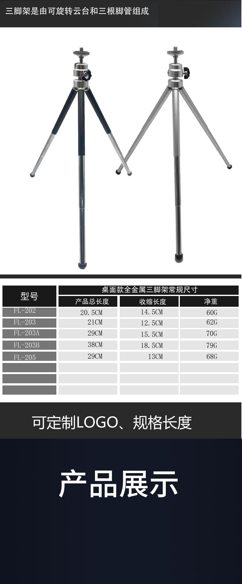 카메라 데스크탑 알루미늄 삼각대 휴대폰 라이브 방송 촬영 셀카 스탠드 스테인리스 삼각대 경량 휴대용스토어 가기