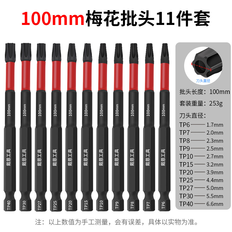 강한 자기 매화 구멍 미터와 바람 머리 중공 육각 T25 전기 드라이버 손 전기 드릴 부리 세트스토어 가기