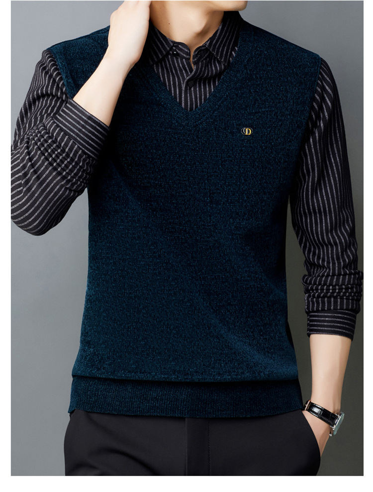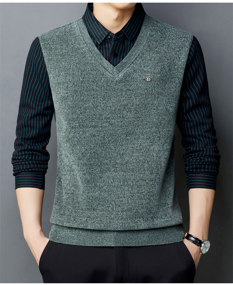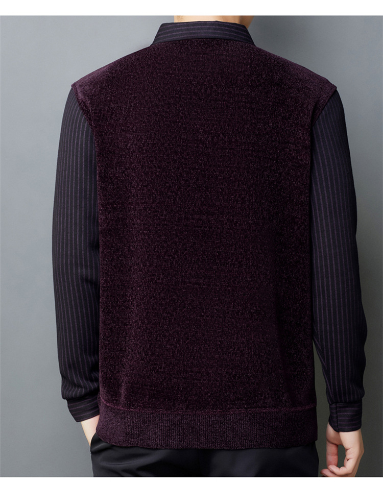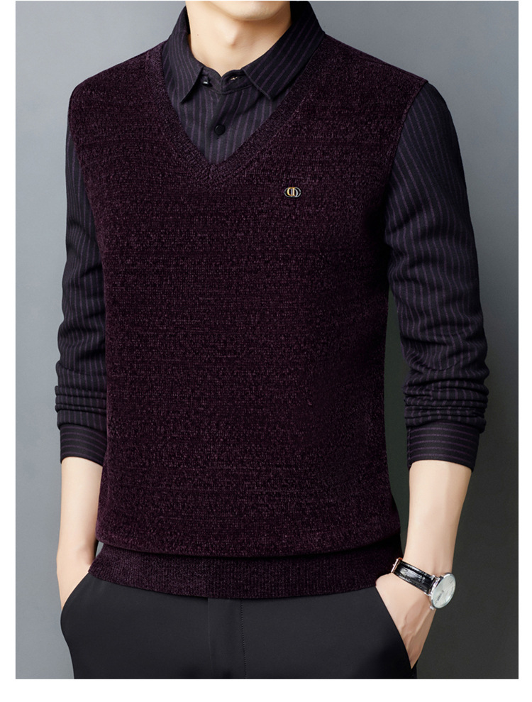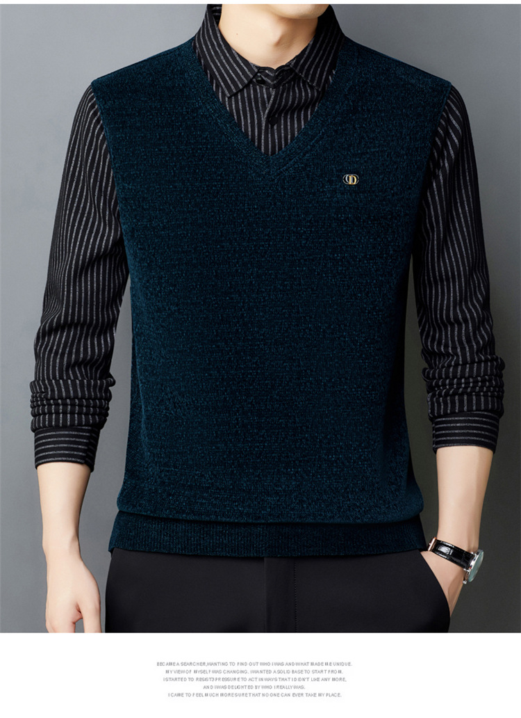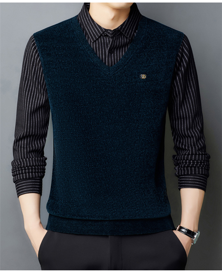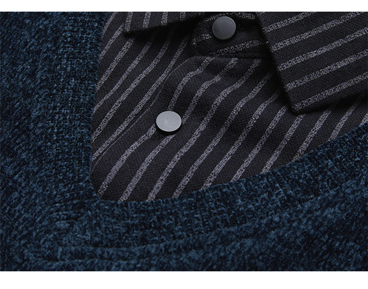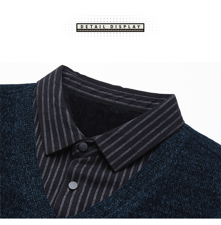 셔닐 가짜 투피스 스웨터 남자의 가을과 겨울 기모 두꺼운 니트 베이스 셔츠 청소년 따뜻한 셔츠 칼라 탑