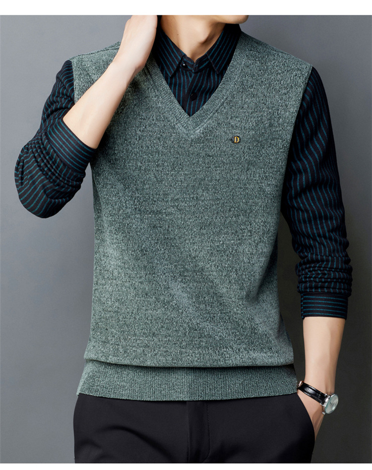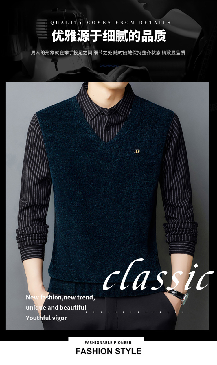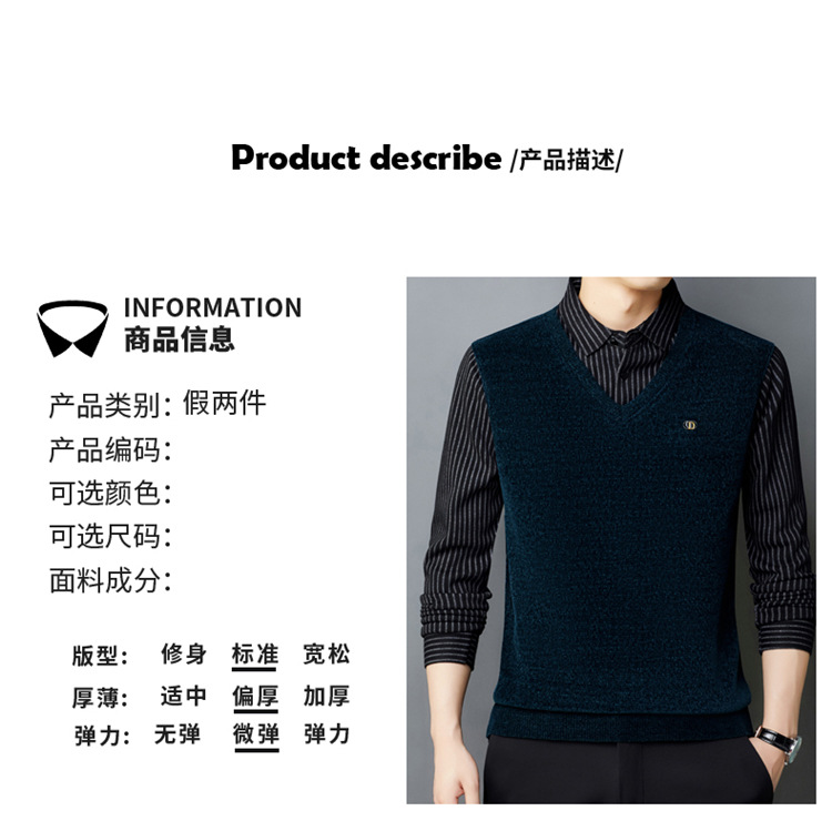 셔닐 가짜 투피스 스웨터 남자의 가을과 겨울 기모 두꺼운 니트 베이스 셔츠 청소년 따뜻한 셔츠 칼라 탑스토어 가기