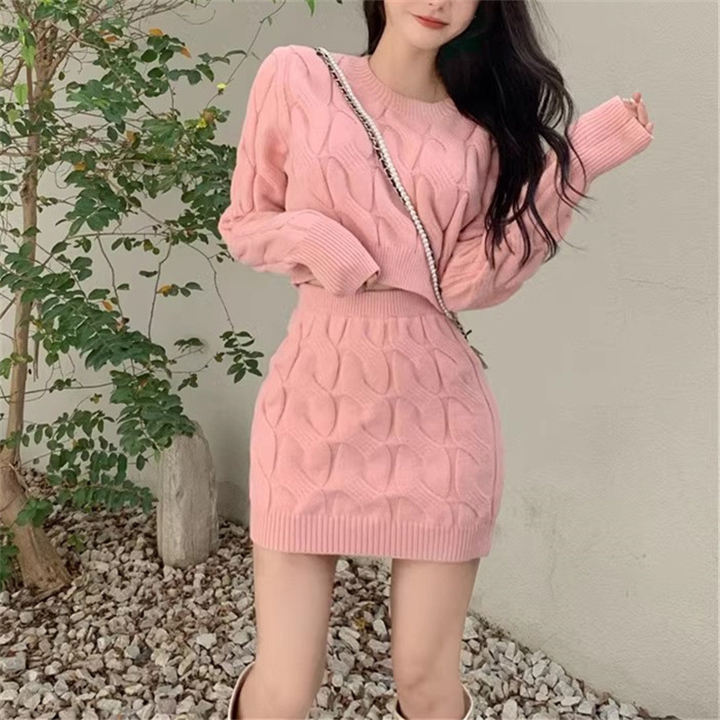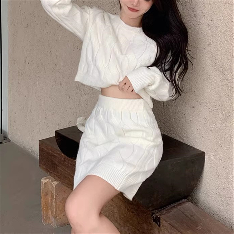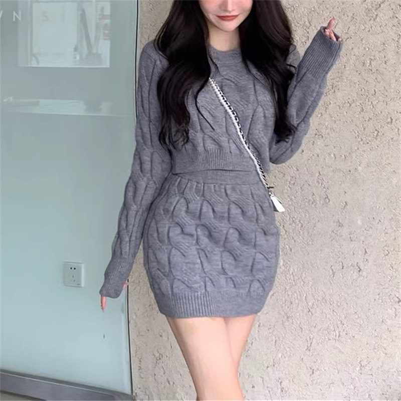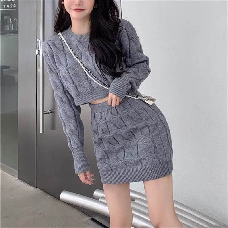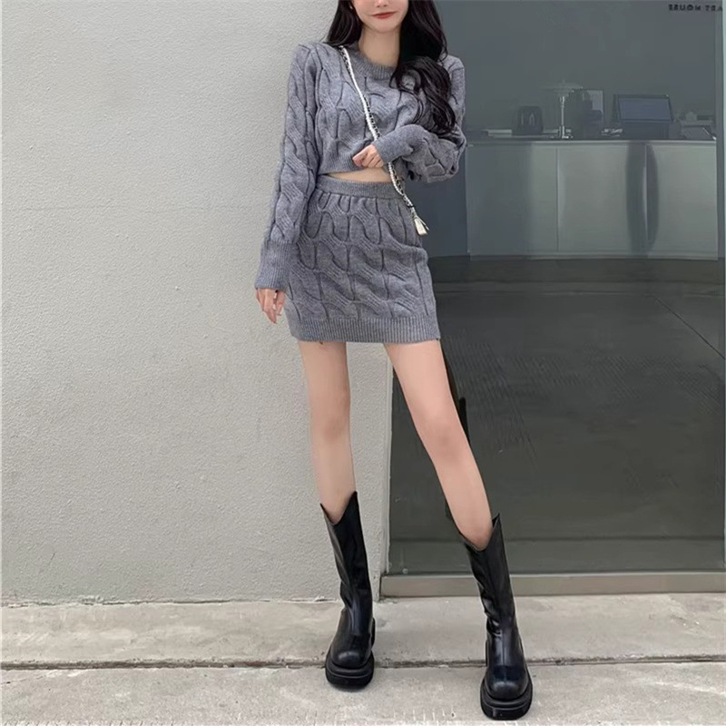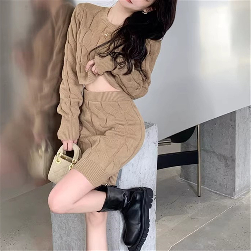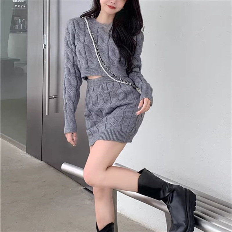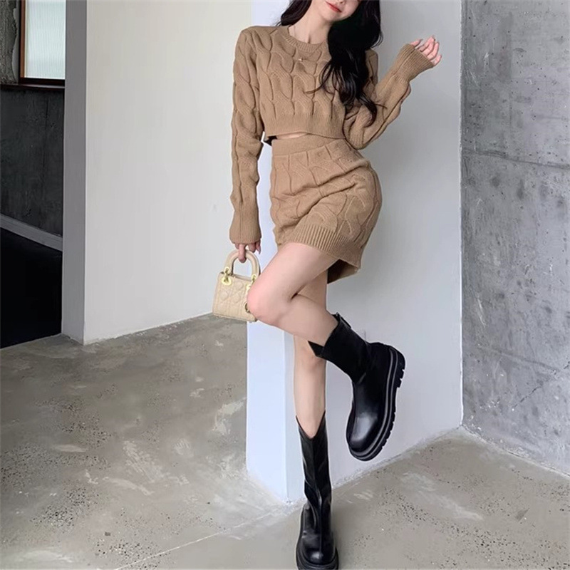 2023 가을과 겨울 기질 사교계 섹시 핫 걸 세트 여성 트위스트 스웨터 니트 힙 스커트 투피스 세트스토어 가기