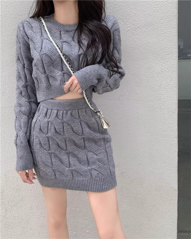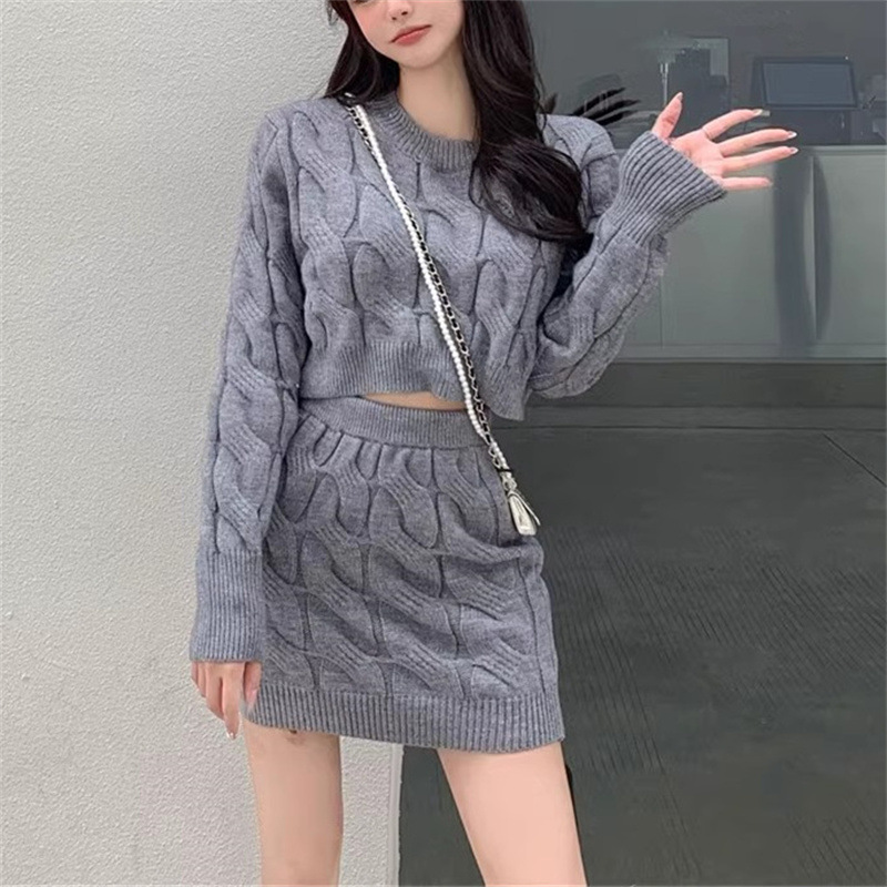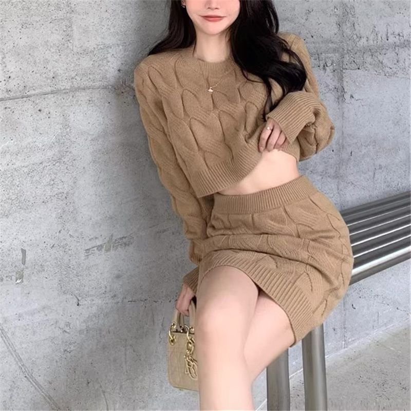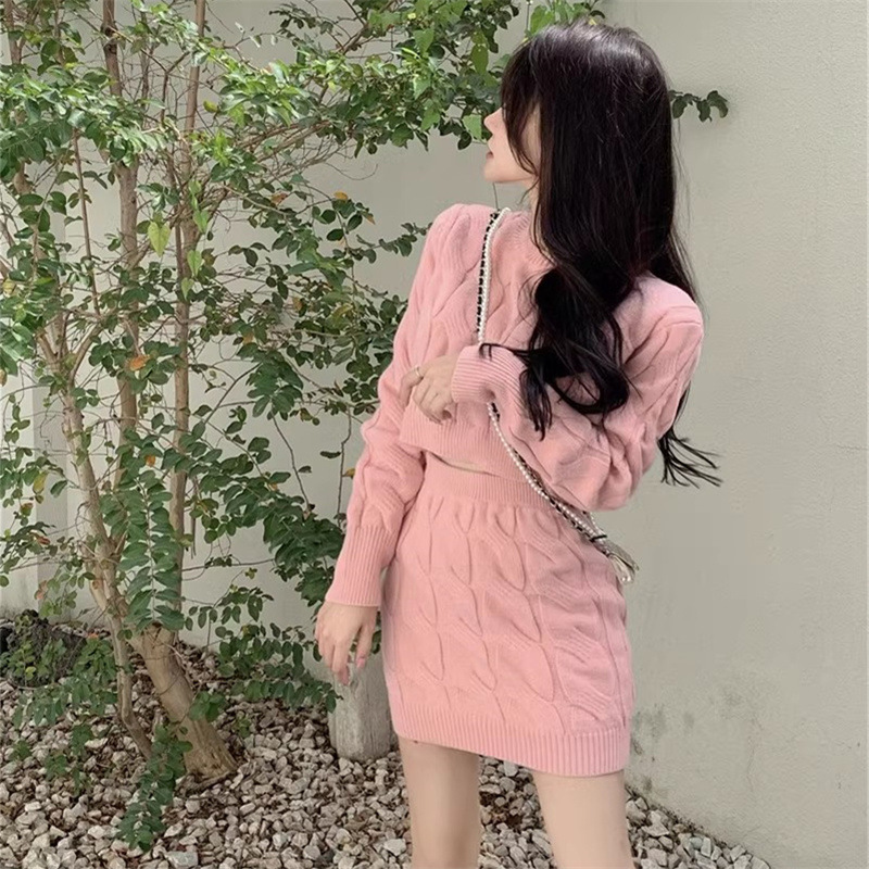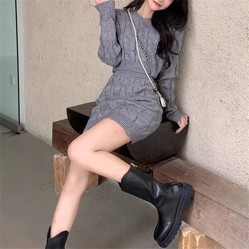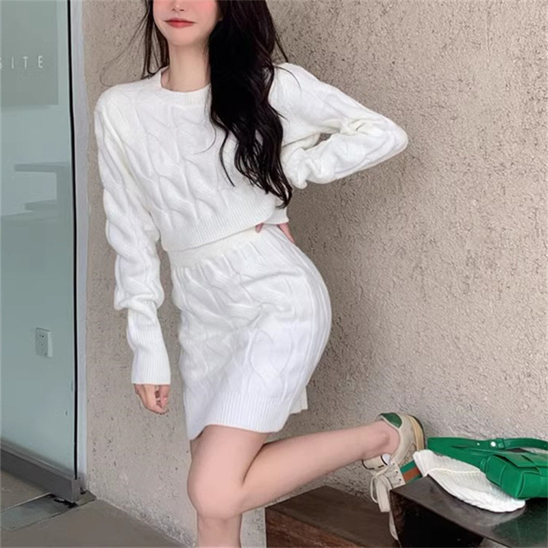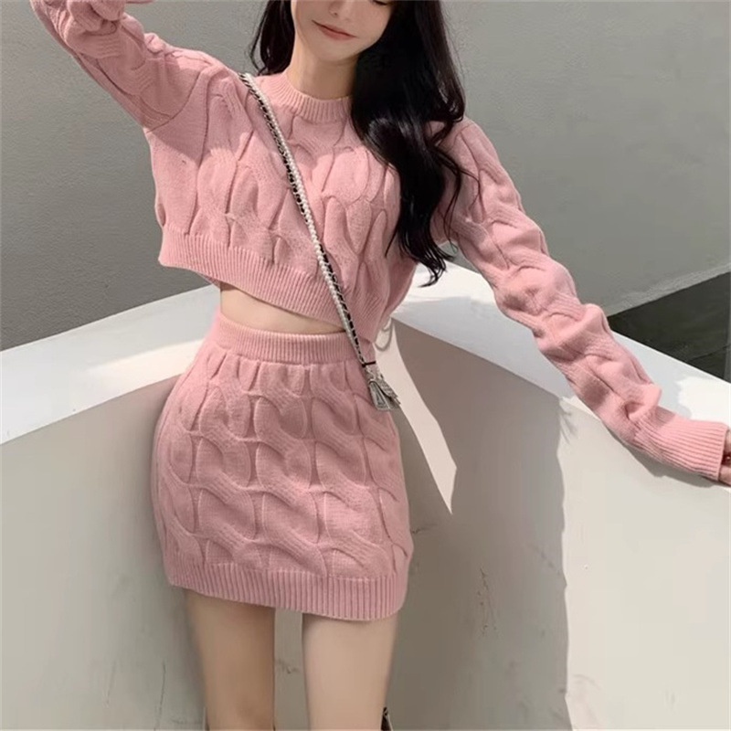 2023 가을과 겨울 기질 사교계 섹시 핫 걸 세트 여성 트위스트 스웨터 니트 힙 스커트 투피스 세트스토어 가기