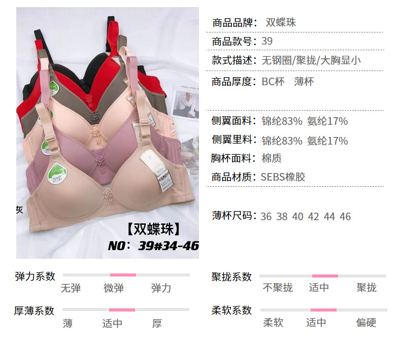 반지없는 소프트 크림 느낌면 얇은 속옷 여성의 큰 가슴 작은 처짐 방지 투브레스트 플러스 사이즈 브래지어 국경스토어 가기