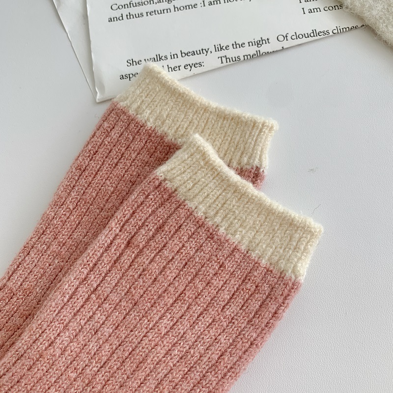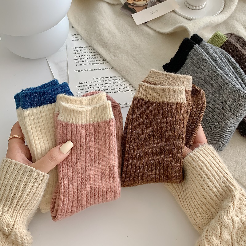 심플한 세로 줄무늬 대학식 두꺼운 중간 길이 양말 컬러 매칭 울 양말 겨울 부드럽고 따뜻한 겉옷 더미 양말