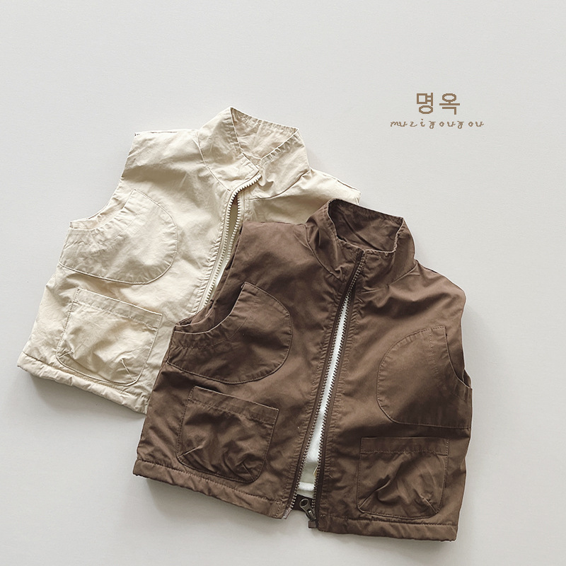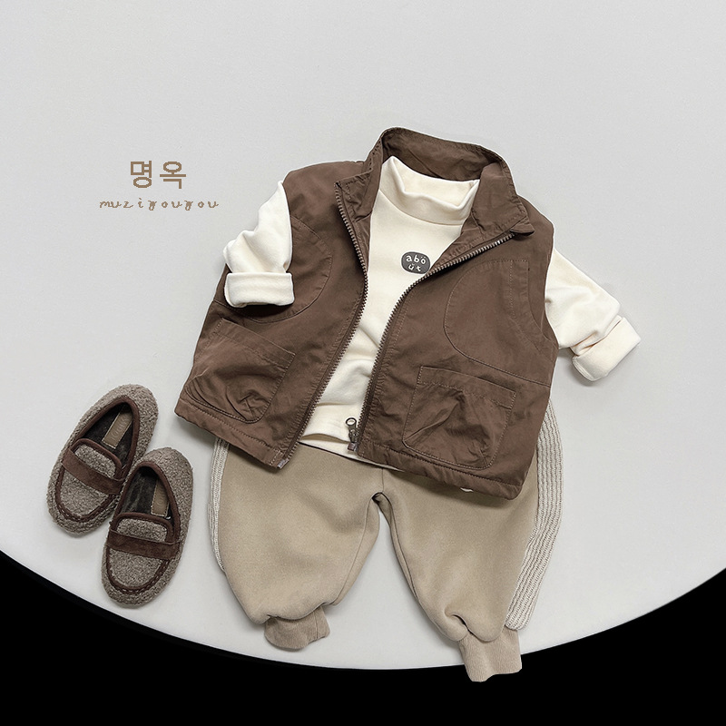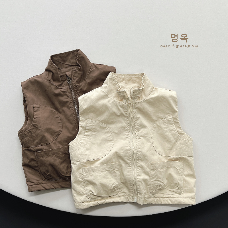 하라주쿠 스타일 남아화물 조끼 겨울 새로운 중형 및 소형 여성 아기 한국 스타일 기모 따뜻한 유행 멋진 조끼 아동복