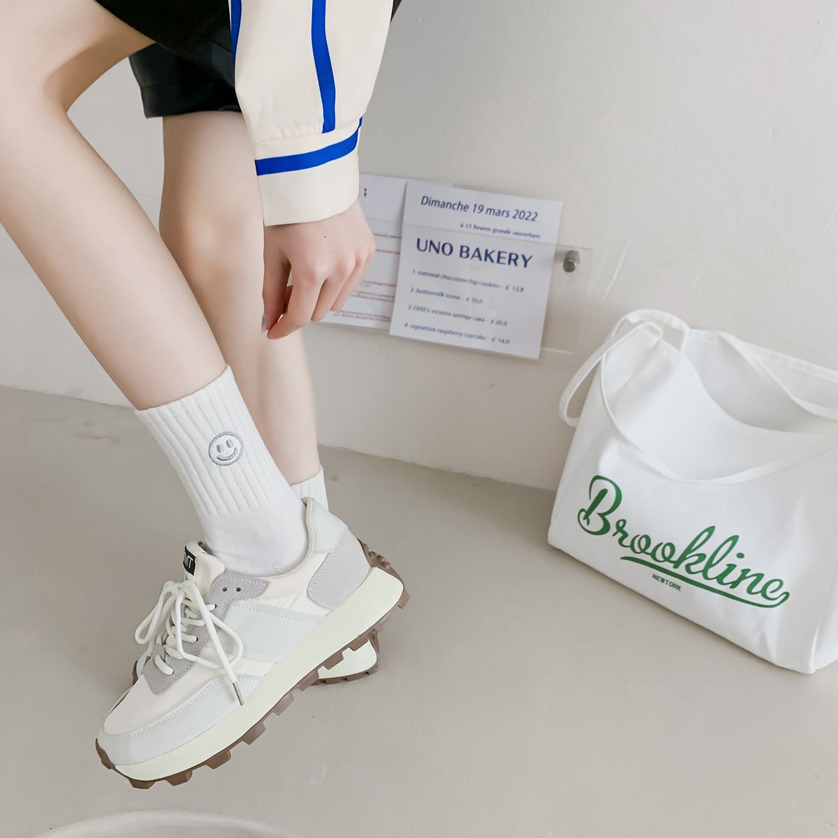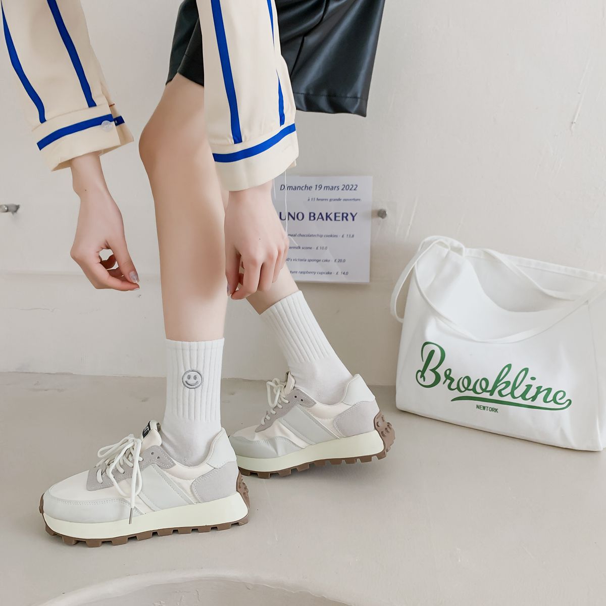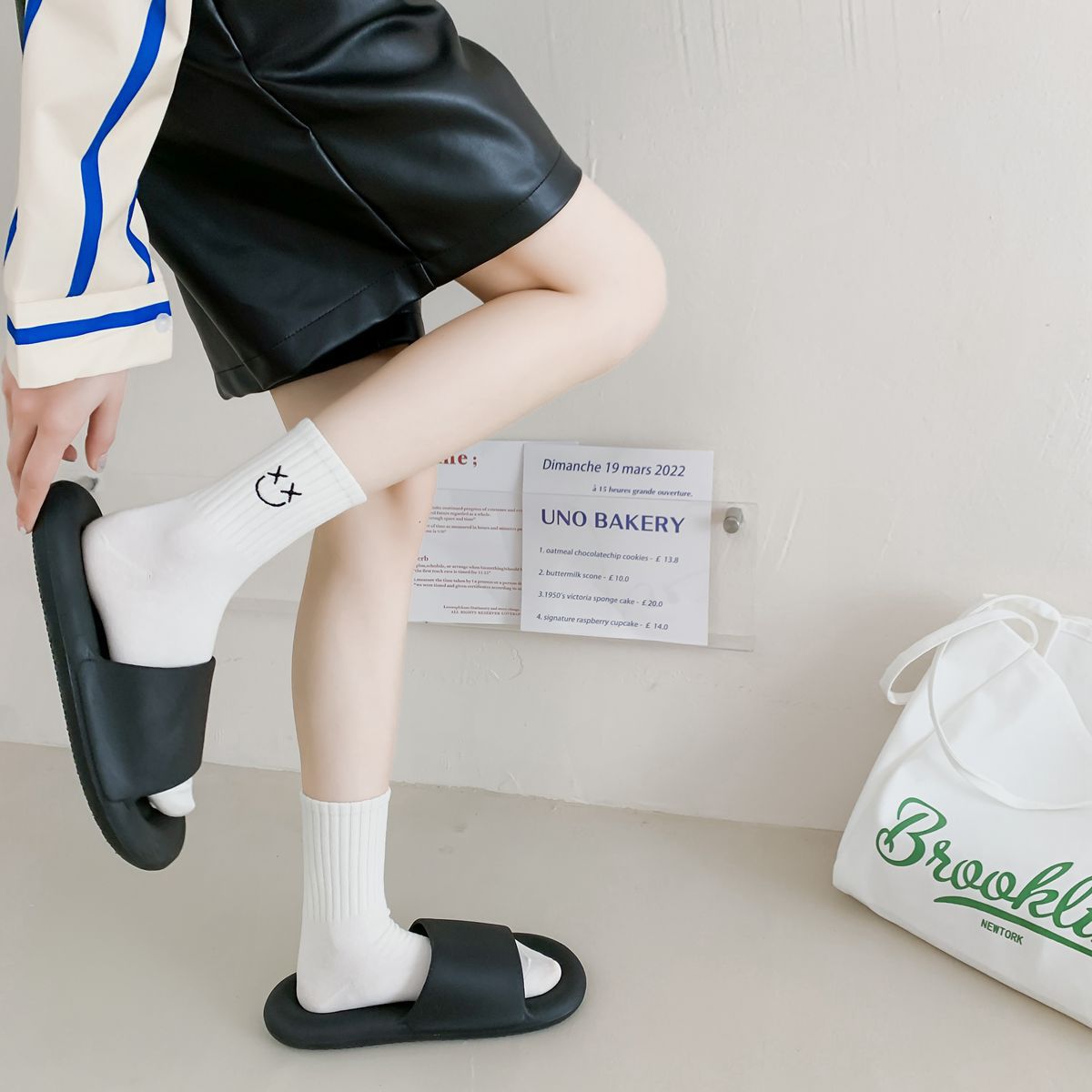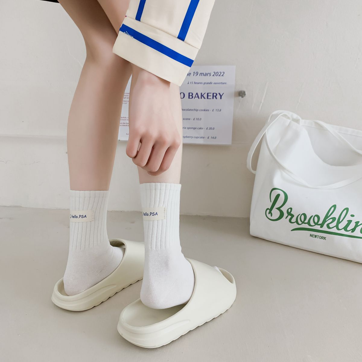새로운 스타일 양말 여자의 일본식 스마일 작은 흰색 양말 가을 단색 중간 및 짧은 튜브 여자 양말 편지 트렌디 개인화 된 학생스토어 가기