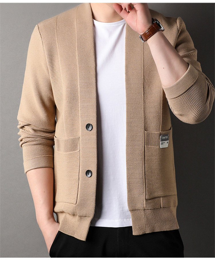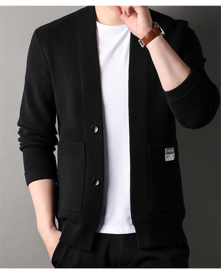 니트 가디건 아우터 남성 2023 가을과 겨울 새로운 심플 유스 포켓 가디건 스웨터 클래식 코트