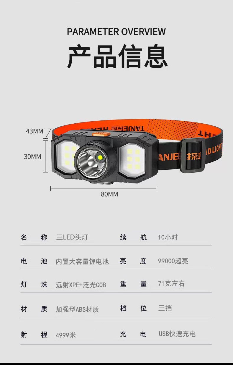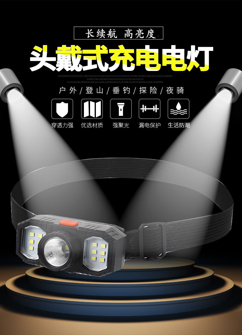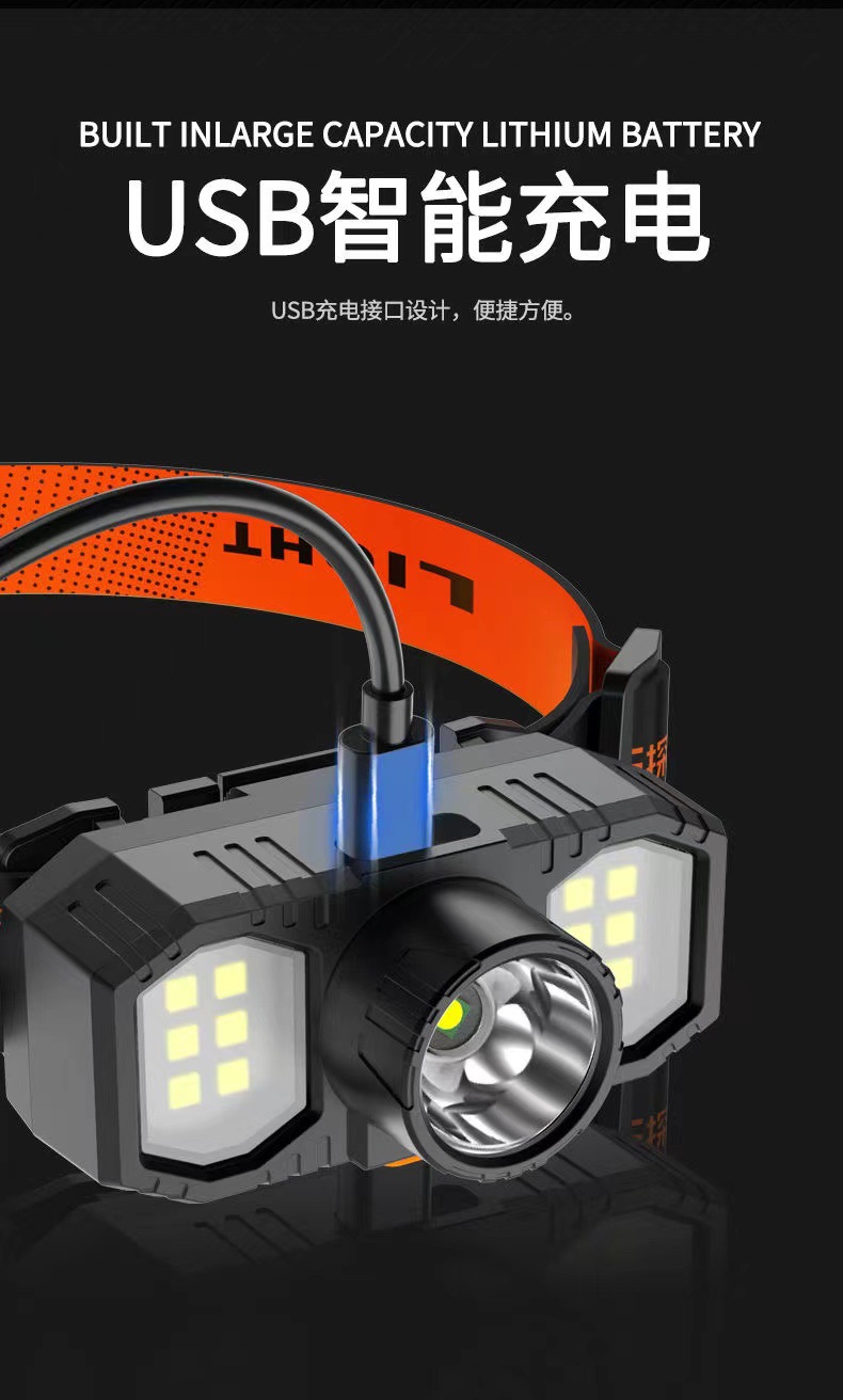 새로운 크로스 보더 led 헤드 라이트 야외 조명 cob 미니 usb 충전식 헤드 마운트 라이트 강한 빛 광부 램프 작은 헤드 라이트