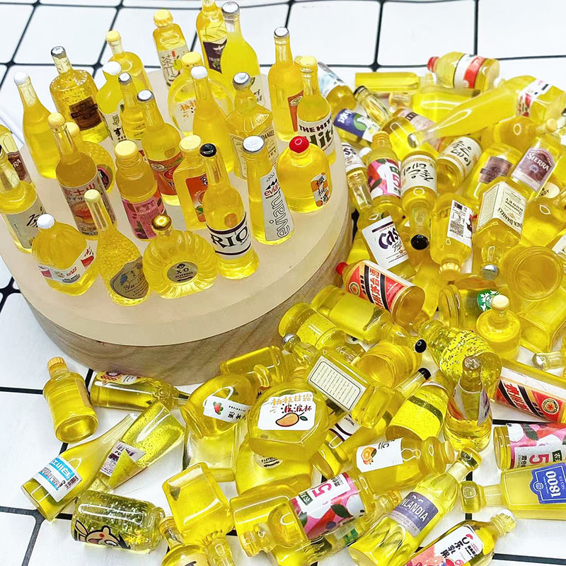 黄色仿真酒瓶透色立体网红饮料小瓶子diy饰品奶油胶树脂配件批发