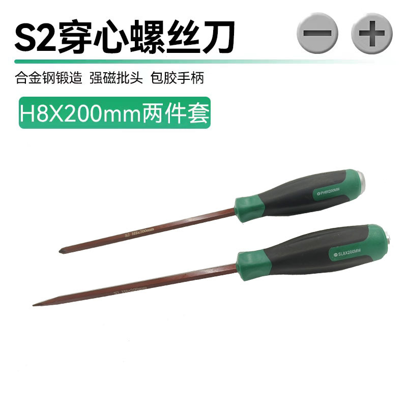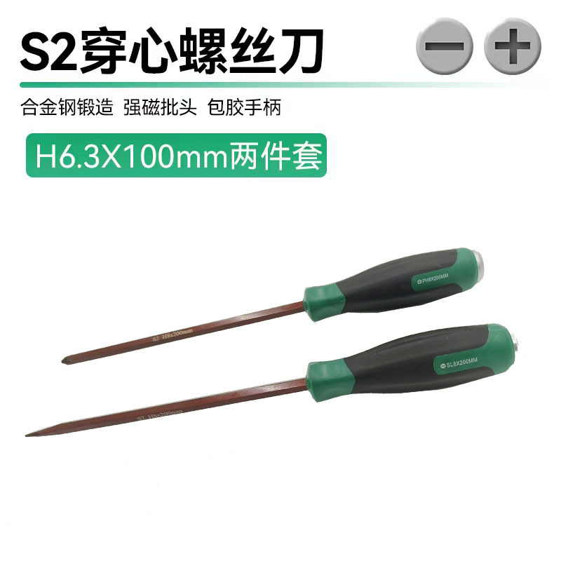 • S2 피어싱 드라이버 녹색과 검정색 핸들 8 인치 + 세트