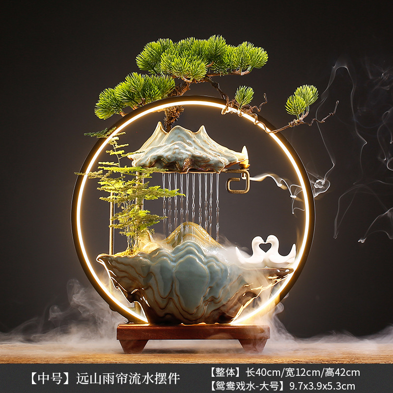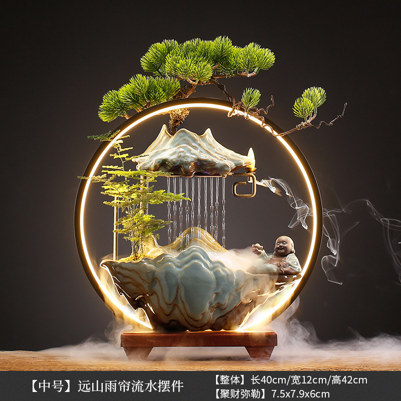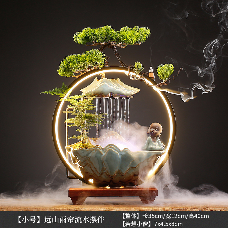 • [스몰 사이즈] 먼 산의 비 커튼과 흐르는 물 장식품-(작은 수도사를 원한다면) (향을 돌려주세요)