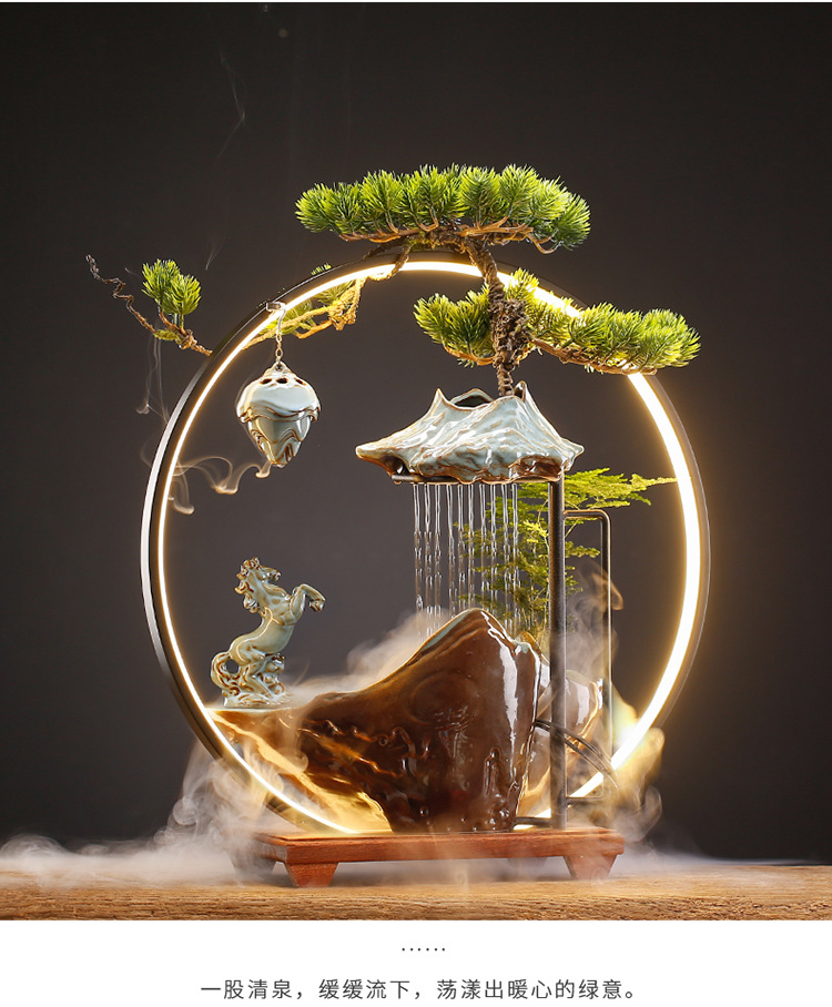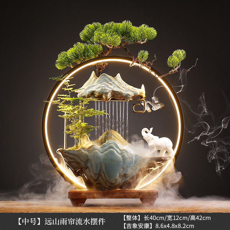 • [대형] 먼 산 비 커튼 물 장식-(행운의 코끼리 Ruyi) (분무기 + 아스파라거스 + 역류 향 포함)