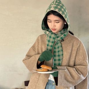 2023秋冬多功能一体帽披肩法帽两用格子韩版百搭加厚保暖围脖针织
