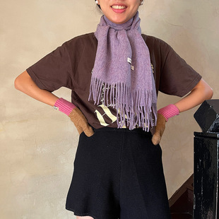 日韩纯色简约2023新款冬季100羊毛围巾冬季保暖流苏羊毛披肩女士