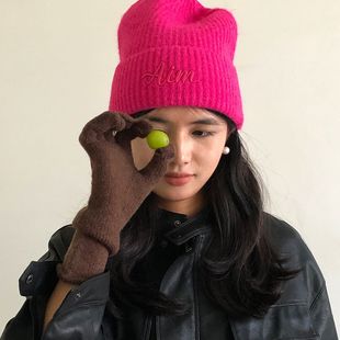 2023秋冬新款针织手套纯色毛线设计师款针织可触屏冬季学生手套女