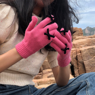 日系秋冬五指手套保暖毛线针织纯色韩版触屏分指可爱学生防寒手套