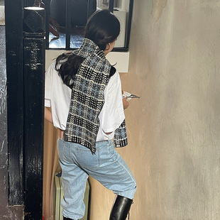 2023秋冬保暖围巾冬季同款格子披肩围脖女冬季加厚OL毛线围巾女士