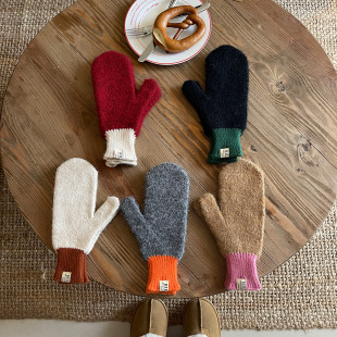 冬季毛线针织手套防寒保暖时尚撞色针织手套韩代并指可爱学生手套