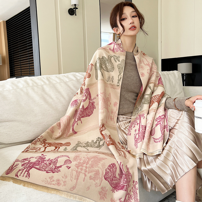 2023 새로운 스타일 스카프 여성의 겨울 모든 경기 두꺼운 모조 캐시미어 에어컨 룸 따뜻한 바깥 날개 숄 목 보호 목 스카프 패션