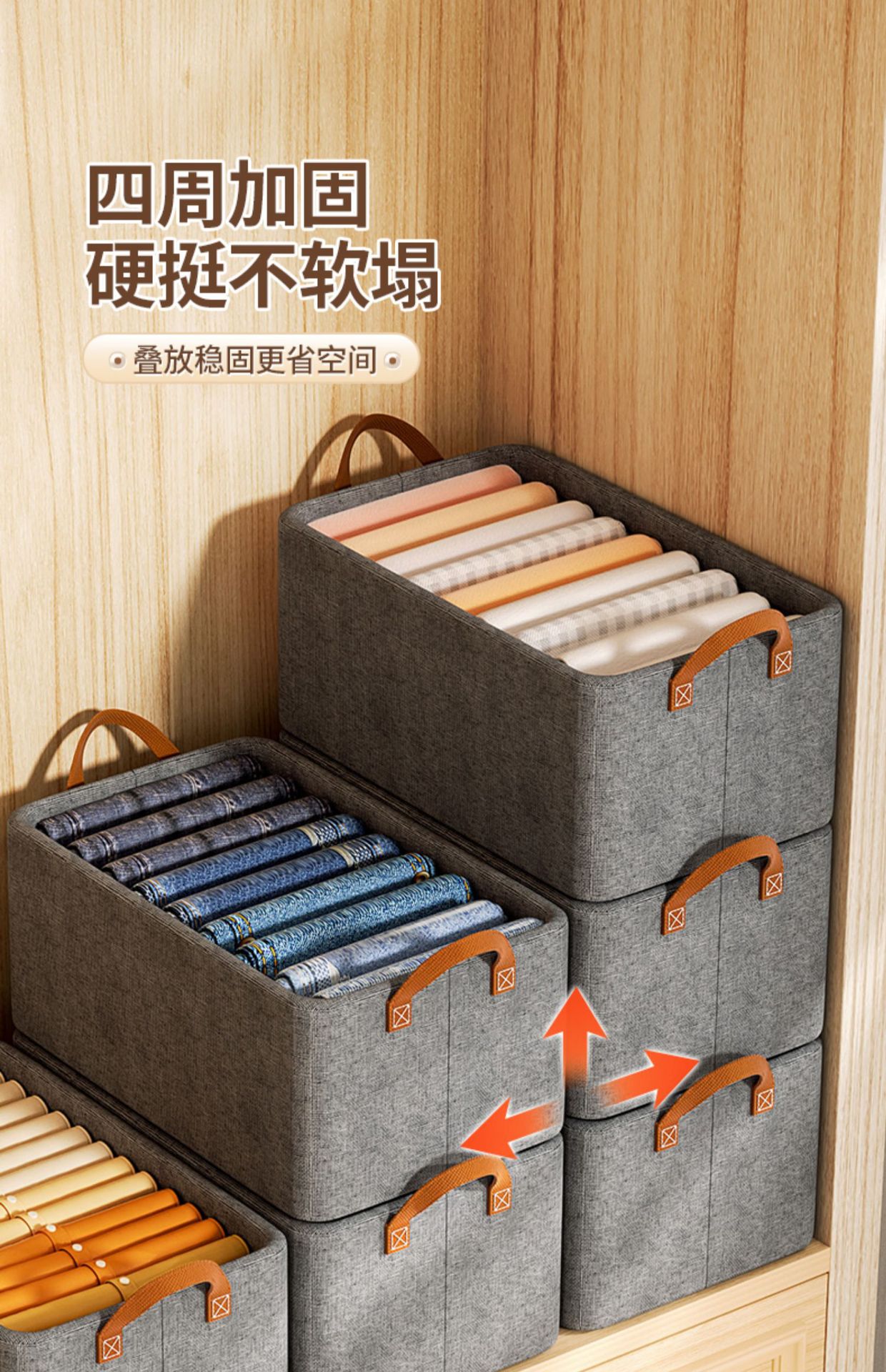 옷 보관함 가정용 옷장 레이어드 유물 옷 바지 마무리 상자 바구니 서랍 접이식 보관함