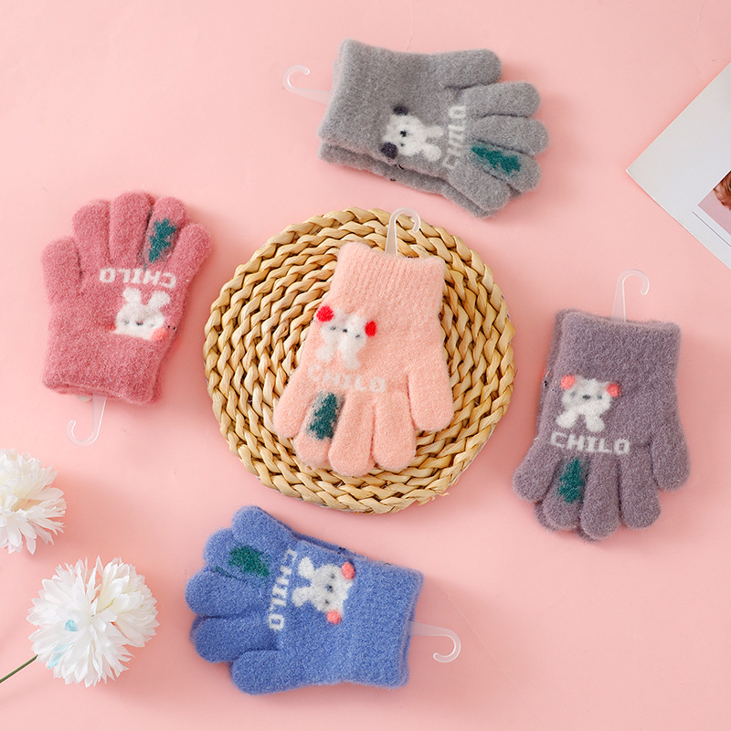 겨울 어린이 소년 다섯 손가락 터치 스크린 장갑 여아 손가락 세트 아기의 야외 사이클링 방풍 따뜻한 니트스토어 가기