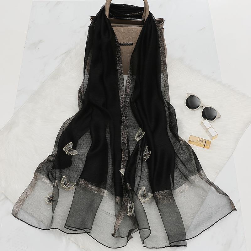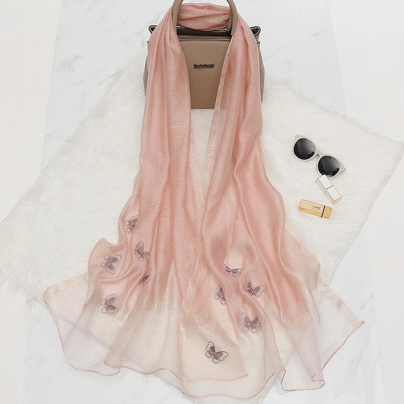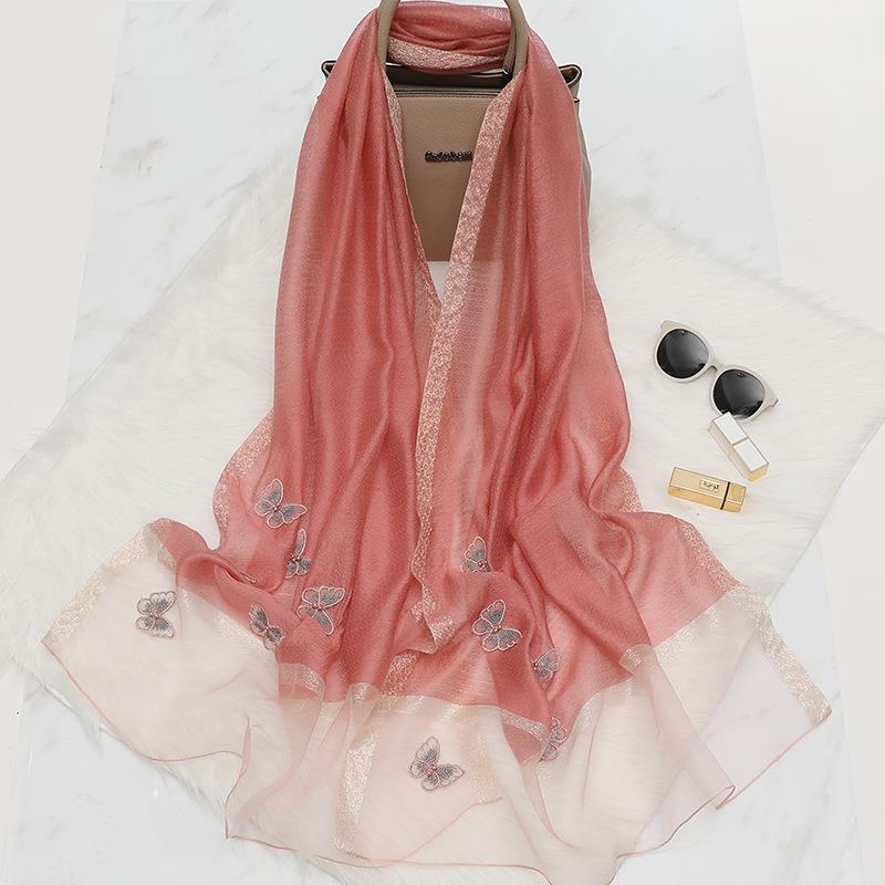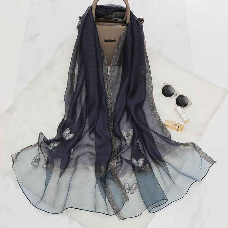 새로운 봄과 여름 자수 나비 실크 울 스카프 한국 다목적 스카프 여성용 숄 라이브 핫 도매