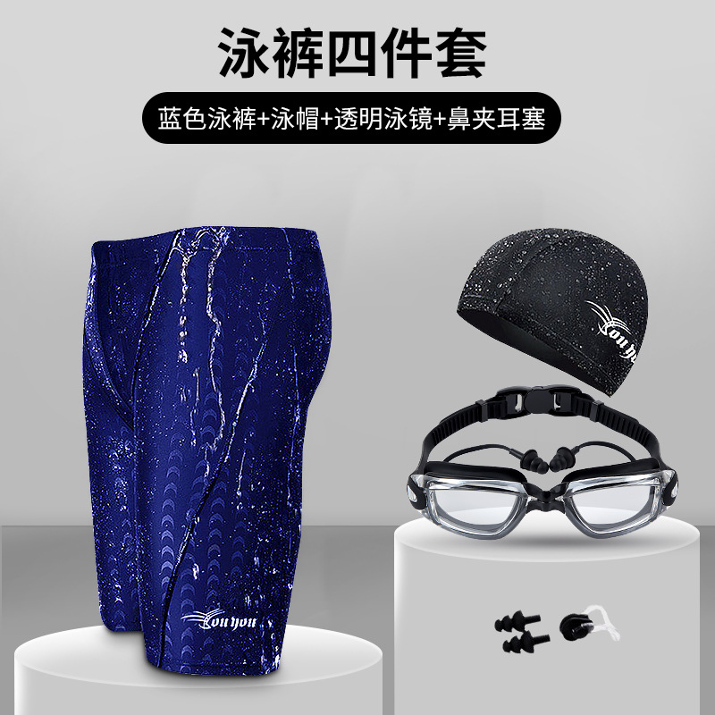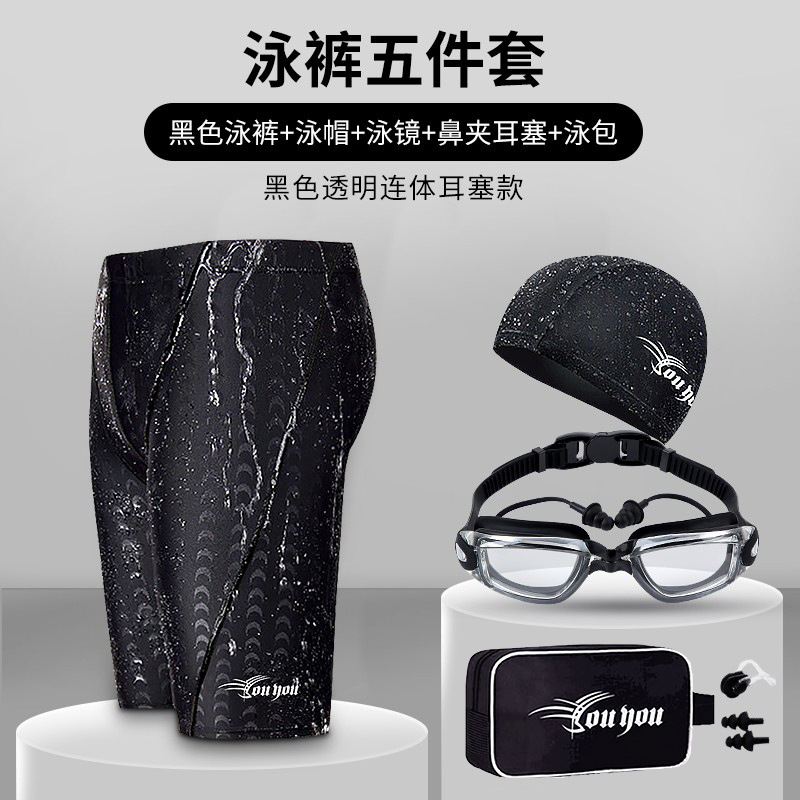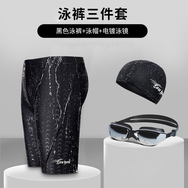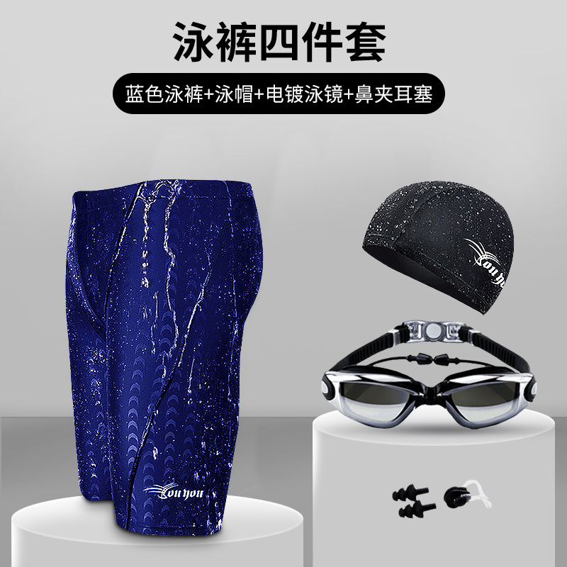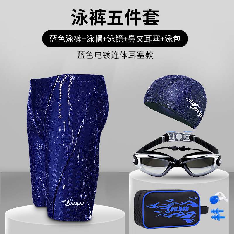 수영 트렁크 남자의 5 점 당황 방지 복서 빠른 건조 플러스 사이즈 수영 용품 세트 수영 트렁크 수영 모자 수영 고글 3 종 세트