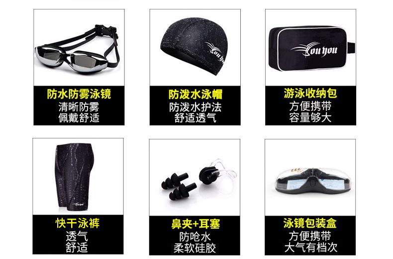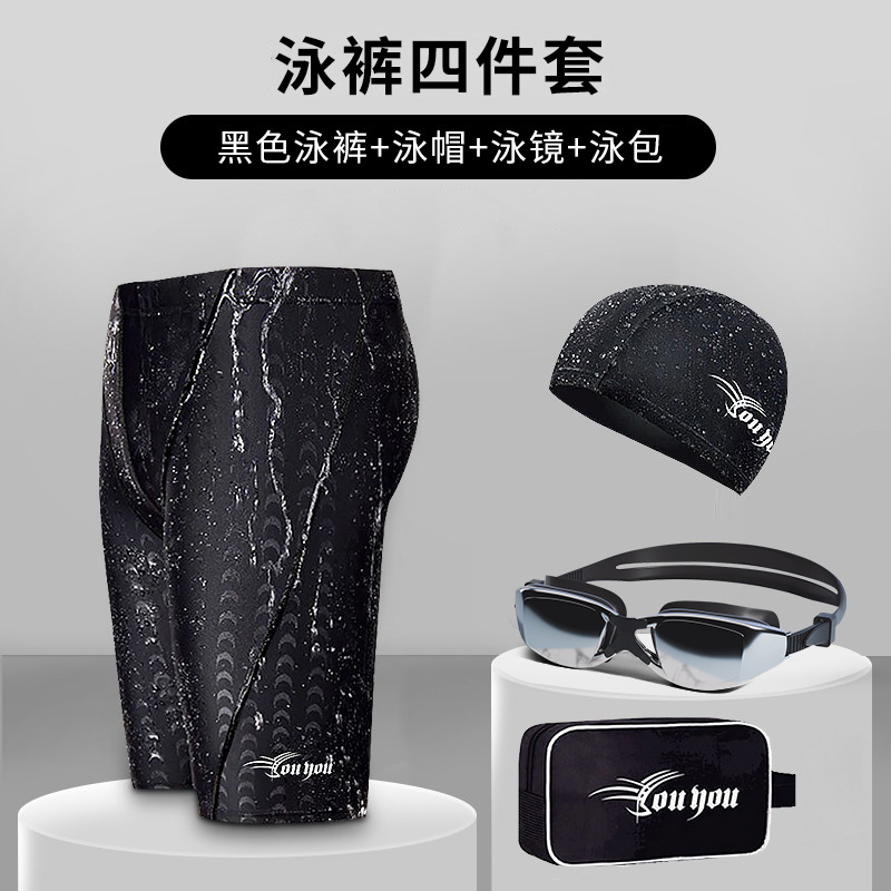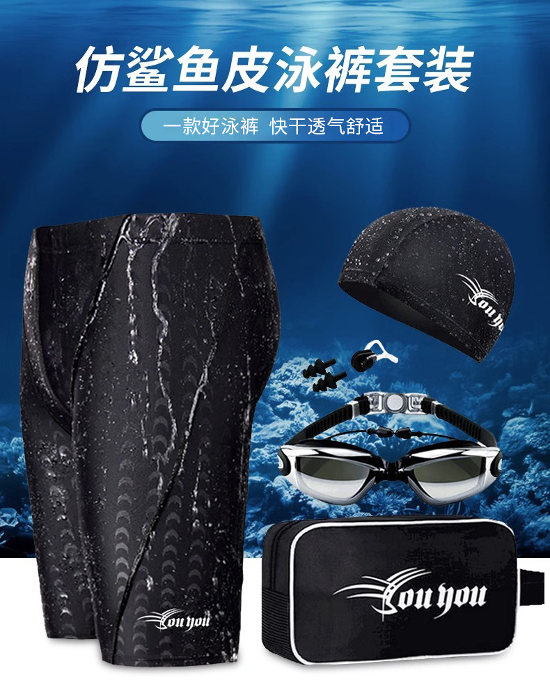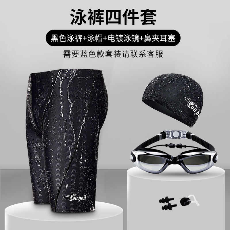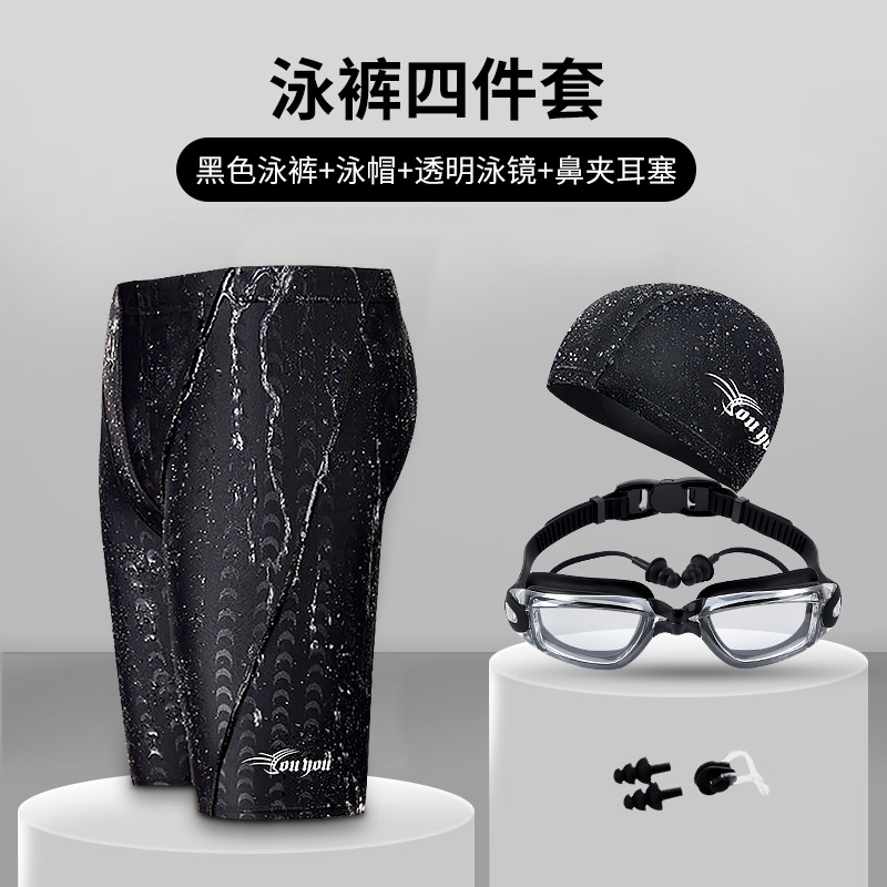 수영 트렁크 남자의 5 점 당황 방지 복서 빠른 건조 플러스 사이즈 수영 용품 세트 수영 트렁크 수영 모자 수영 고글 3 종 세트