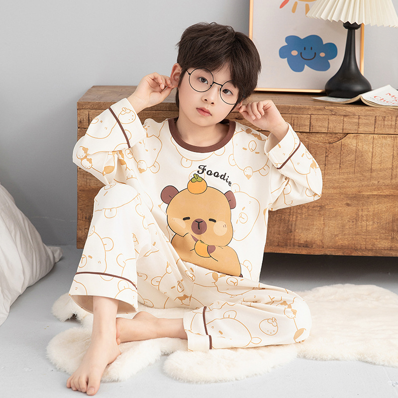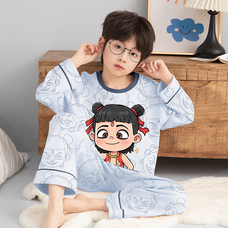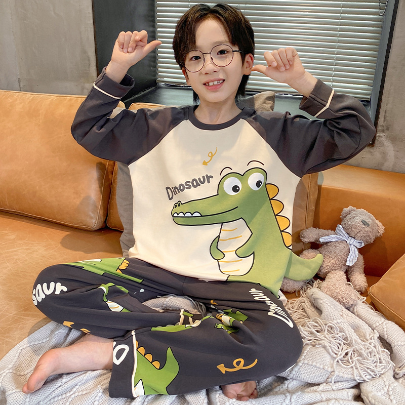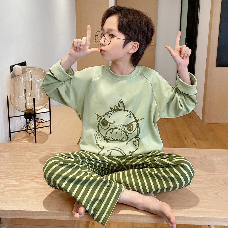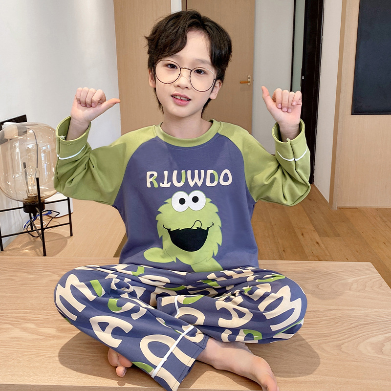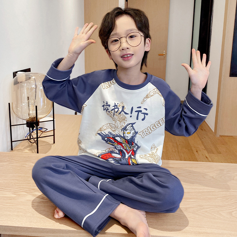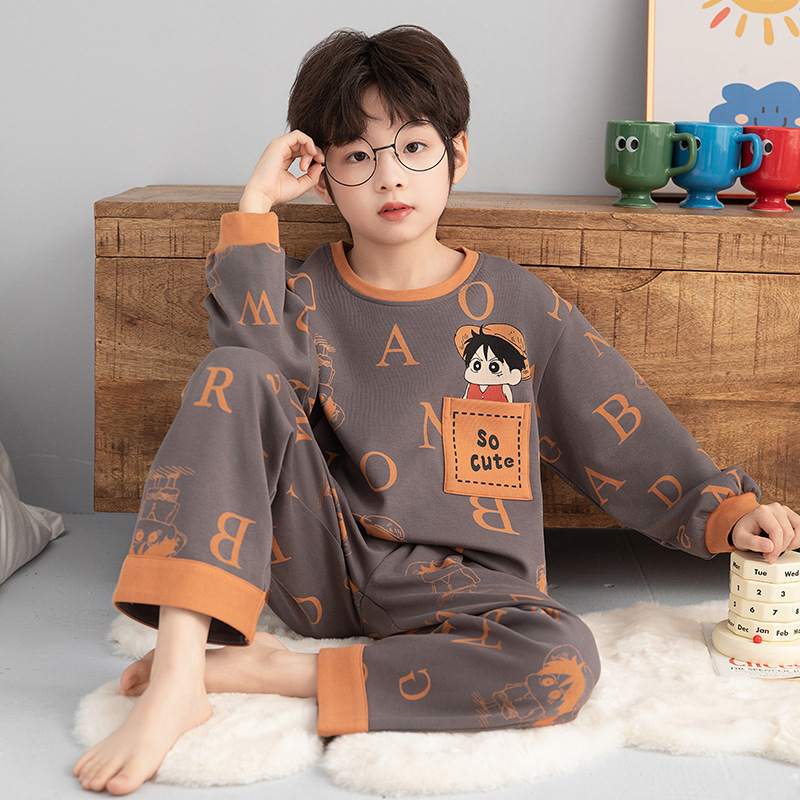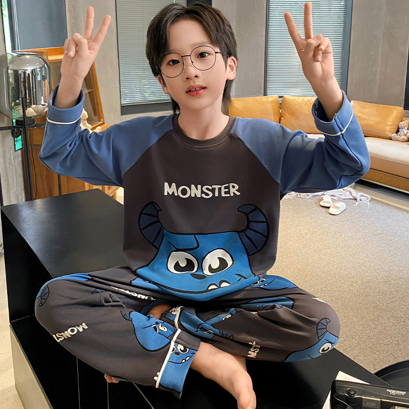 100% 순면 남아용 봄 가을 코마사 면 만화 어린이 잠옷 청소년 및 중년 아동용 캐주얼 홈웨어스토어 가기