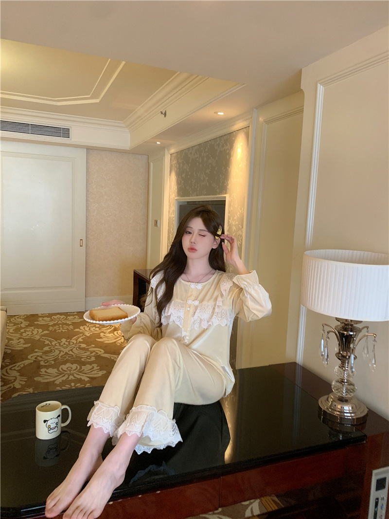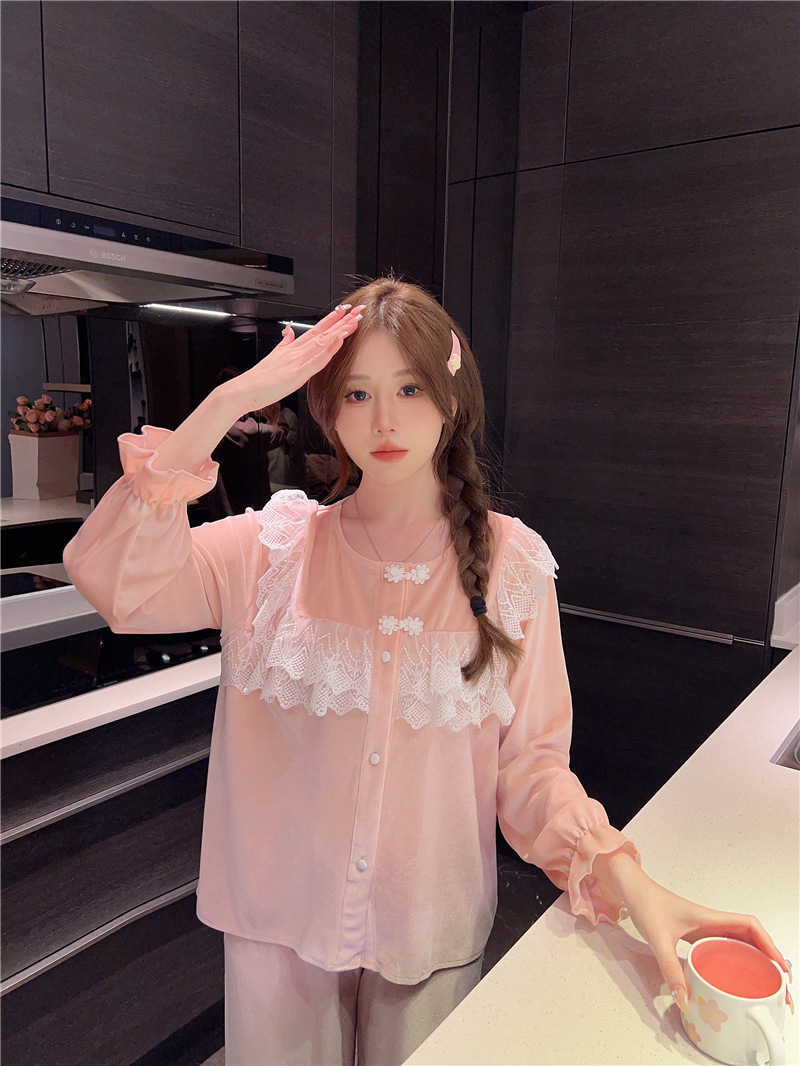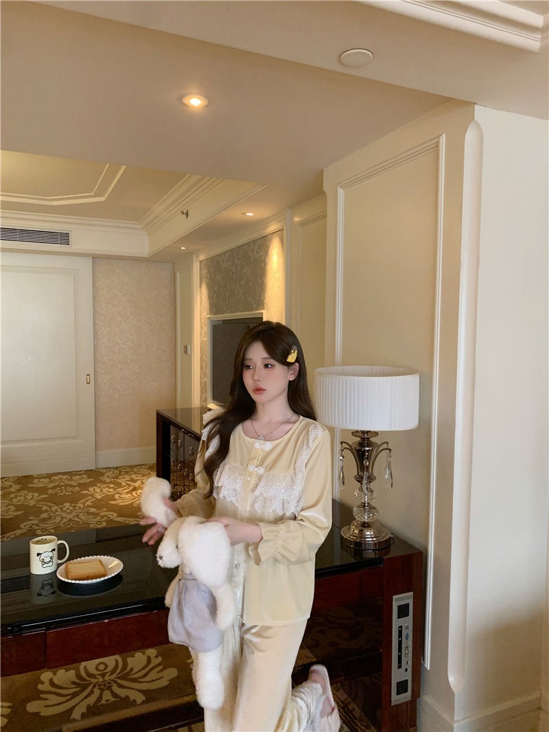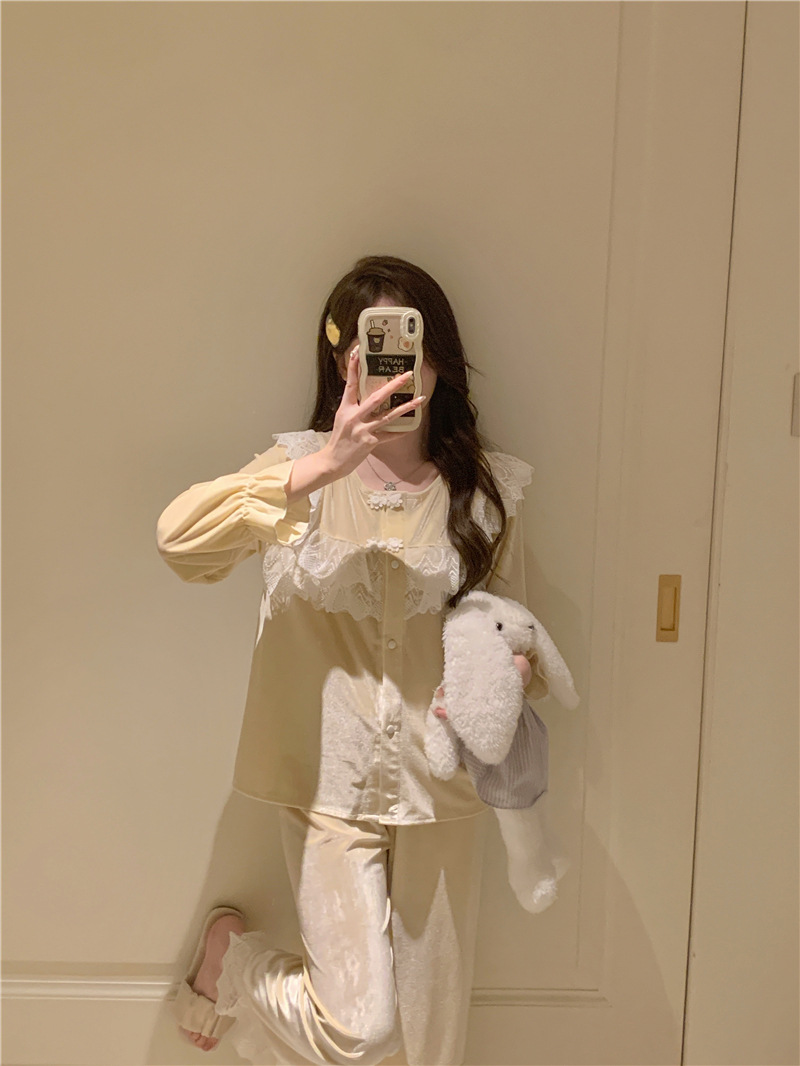 잠옷 여성의 가을과 겨울 새로운 한국 벨벳 레이스 따뜻한 달콤한 긴 소매 바지 세트 홈웨어