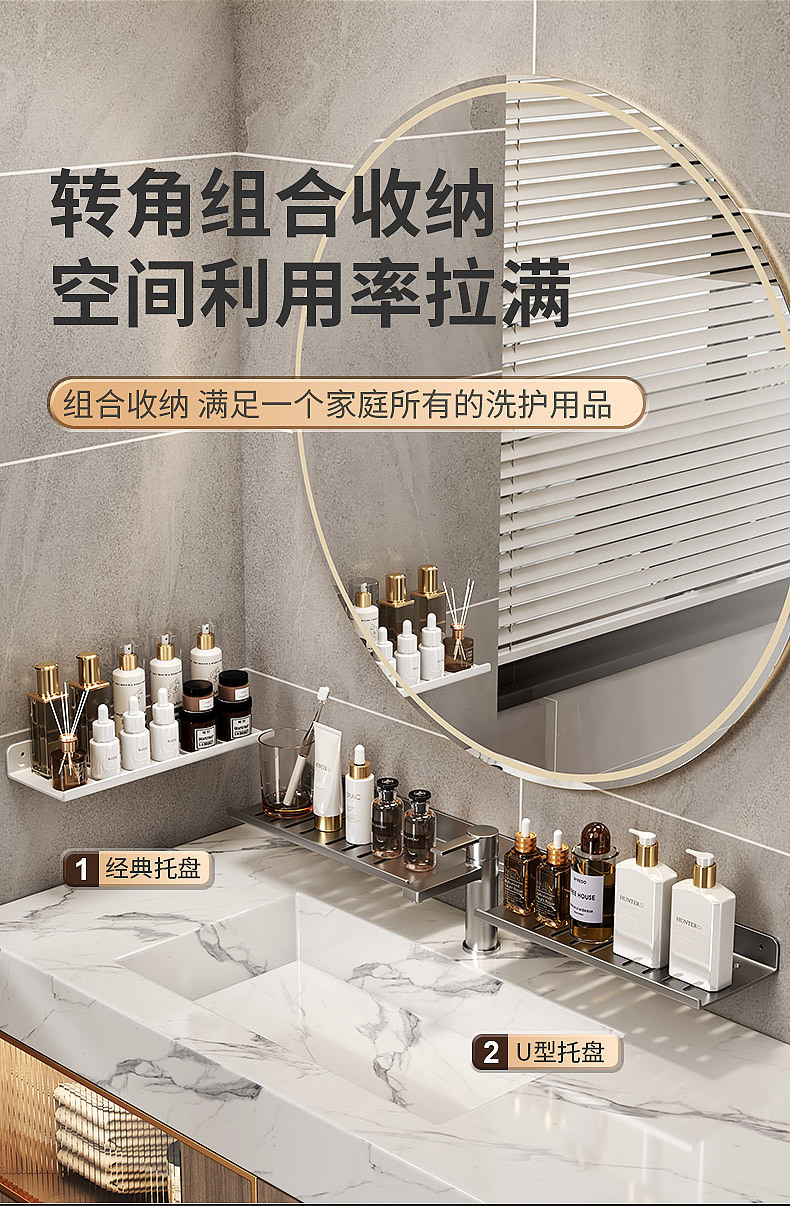 크로스보더 U자형 수납장 가정용 욕실 세면대 세면대 수도꼭지 선반 화장실 펀치 없는 수납장스토어 가기