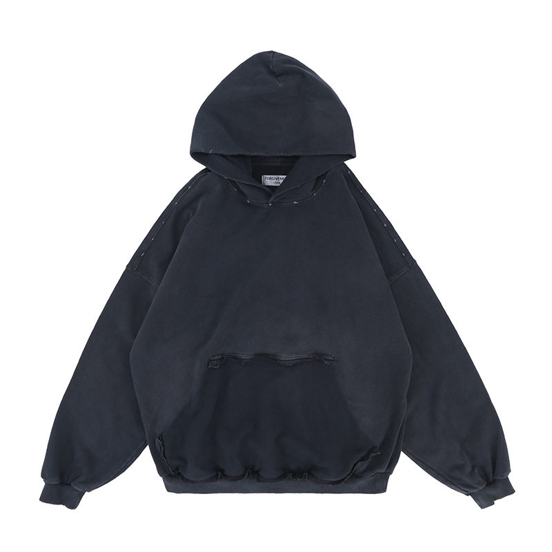 Lanhai 남성 의류 가을, 겨울 새로운 파리 라이트 보드 스웨터 워시 헤비급 레트로 디스트레스드 은 후드 티셔츠스토어 가기