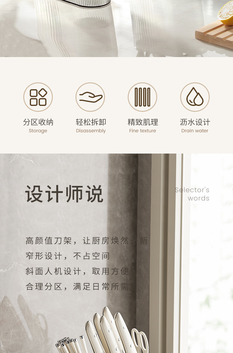 [Wo Dou] 주방 조명 럭셔리 고급 다기능 나이프 홀더 나이프 수납 랙 조리대 젓가락 보관 랙 젓가락 케이지스토어 가기