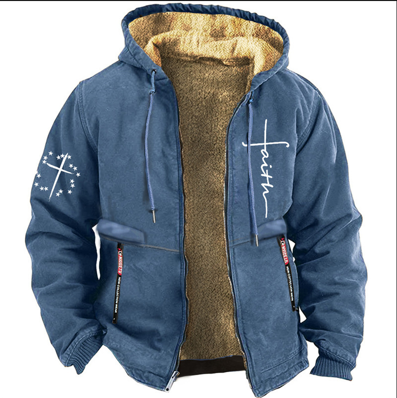 크로스 보더 캐시미어 남성용 스웨터 가을과 겨울 기모 두꺼운 후드 스포츠웨어 캐주얼 가디건 따뜻한 재킷
