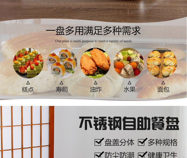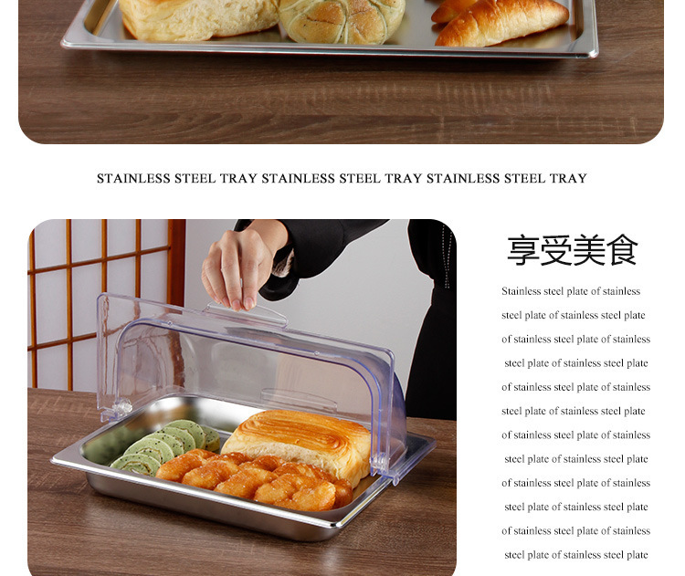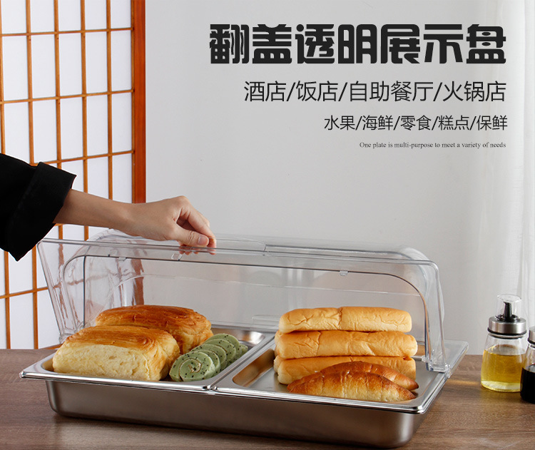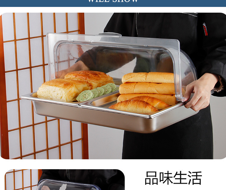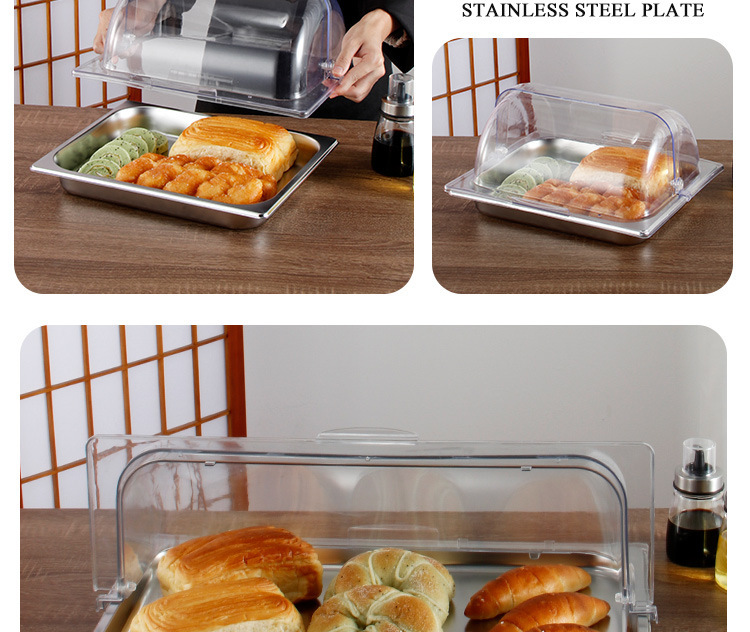 방진 빵 바구니 커버 뚜껑 직사각형 뷔페 스테인레스 스틸 디스플레이 플레이트 뚜껑이있는 과일 케이크 스낵 트레이