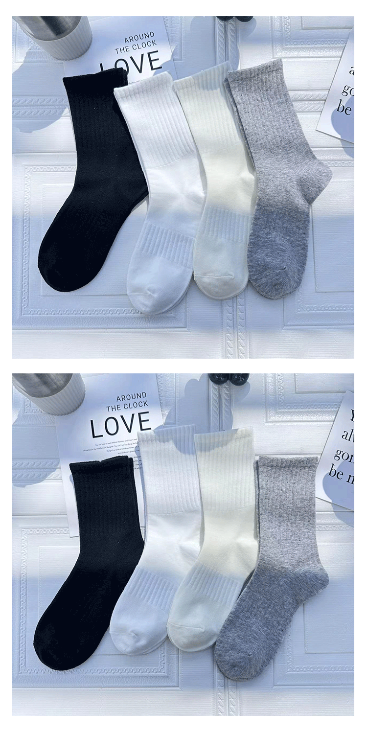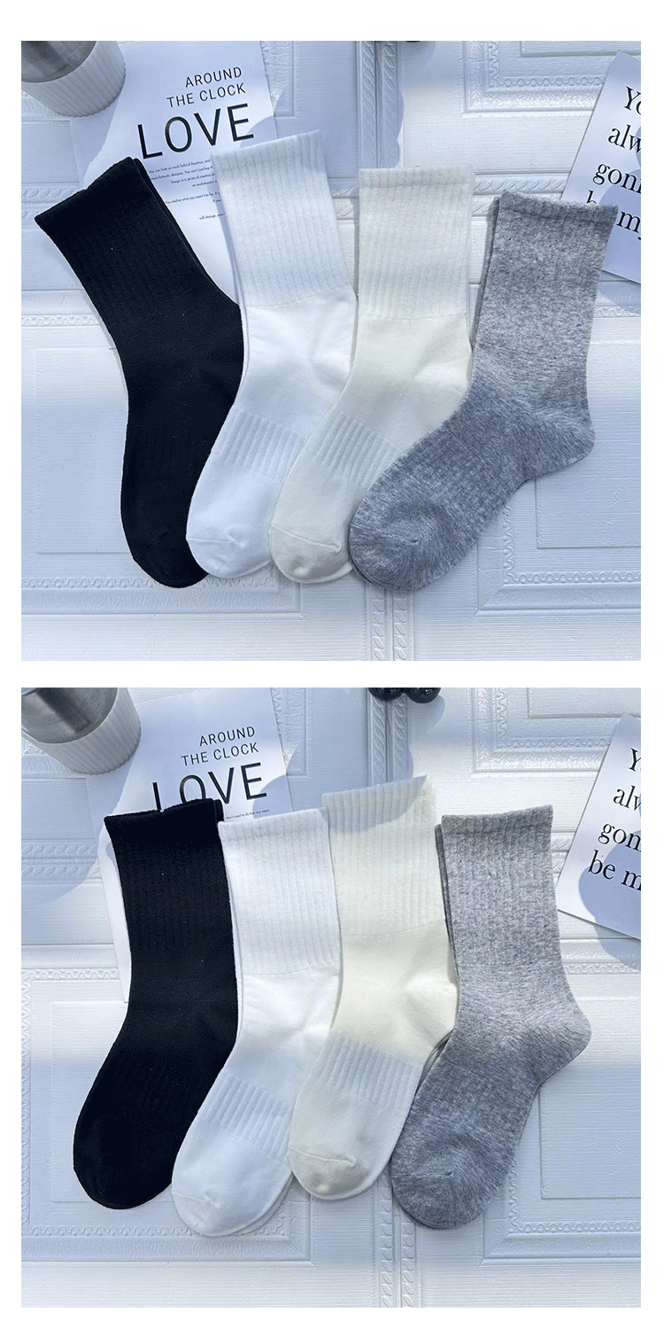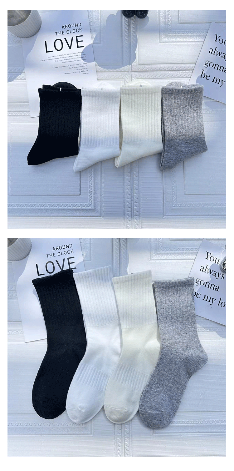 Ji 4 코끼리 양말 여성 가을과 겨울 새로운 단색 높은 스타킹 빗질 된 면 순백색 스포츠 양말 블랙 화이트 학생 양말