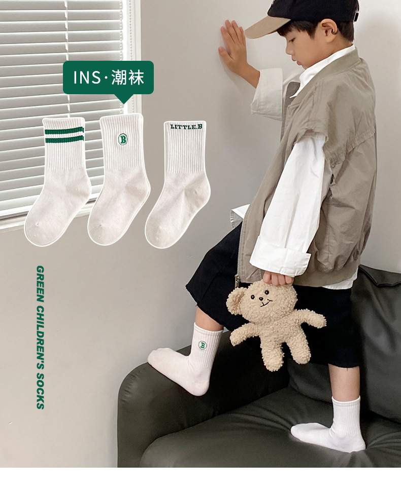 어린이 양말 봄과 가을 면 양말 스트라이프 문자 여아 중간 길이 양말 가을과 겨울 학생 소년과 소녀를위한 유행 양말스토어 가기