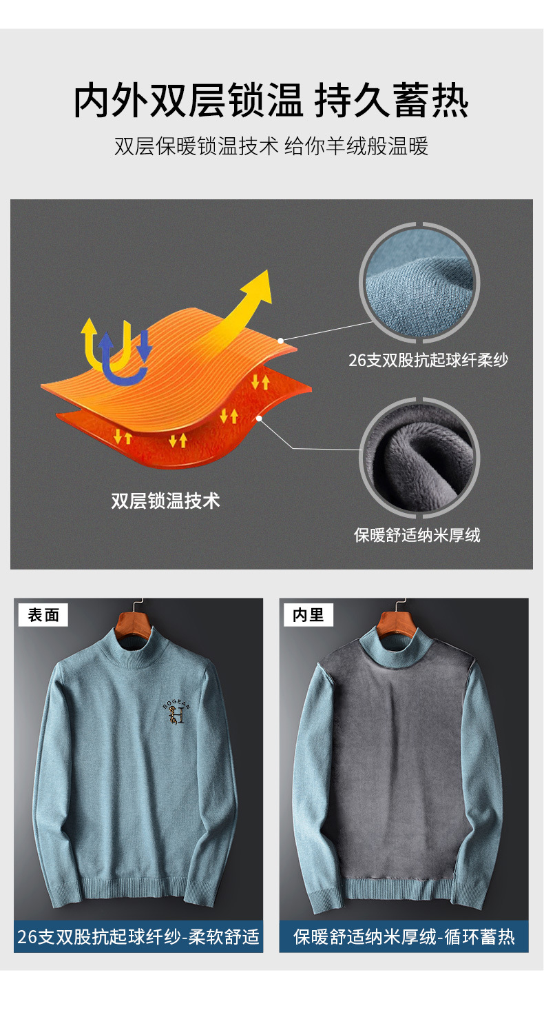 너무 따뜻해요! 남성용 하프 터틀넥 스웨터, 가을 겨울용, 기모 처리된 두꺼운 니트 베이스 셔츠, 보풀 방지 스웨터스토어 가기
