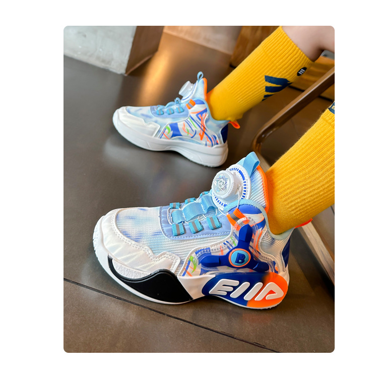 소년 신발 2025 봄과 가을 새로운 어린이 메쉬 통기성 운동화 중 큰 아이 소녀 스위블 버클 농구 신발 트렌디스토어 가기
