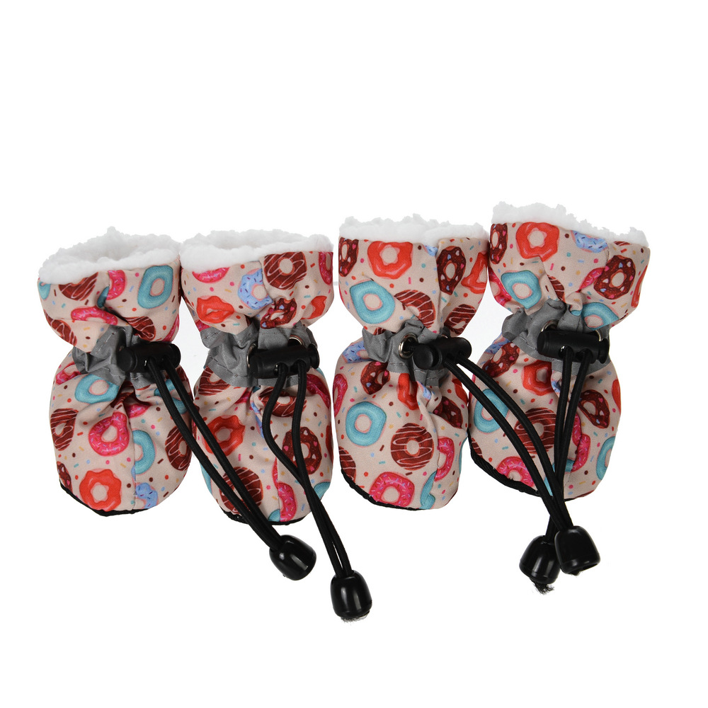아마존 새로운 개 신발 가을과 겨울 인쇄 기모 따뜻한 반사 미끄럼 방지 신발 커버 강아지 양말 애완 동물 신발