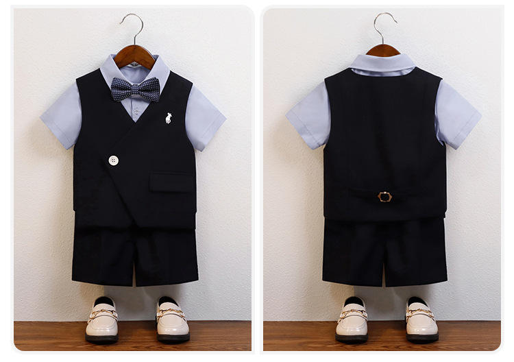 • 순면 반팔 셔츠 + 조끼 + 반바지 + Y5Y6 나비넥타이