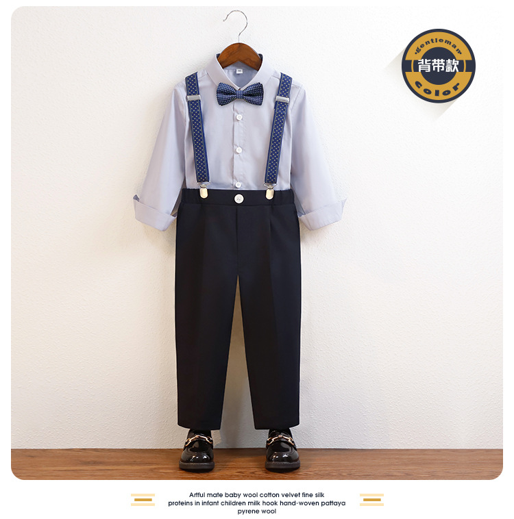 • 긴팔 셔츠 + 바지 + 스트랩 + 나비 넥타이