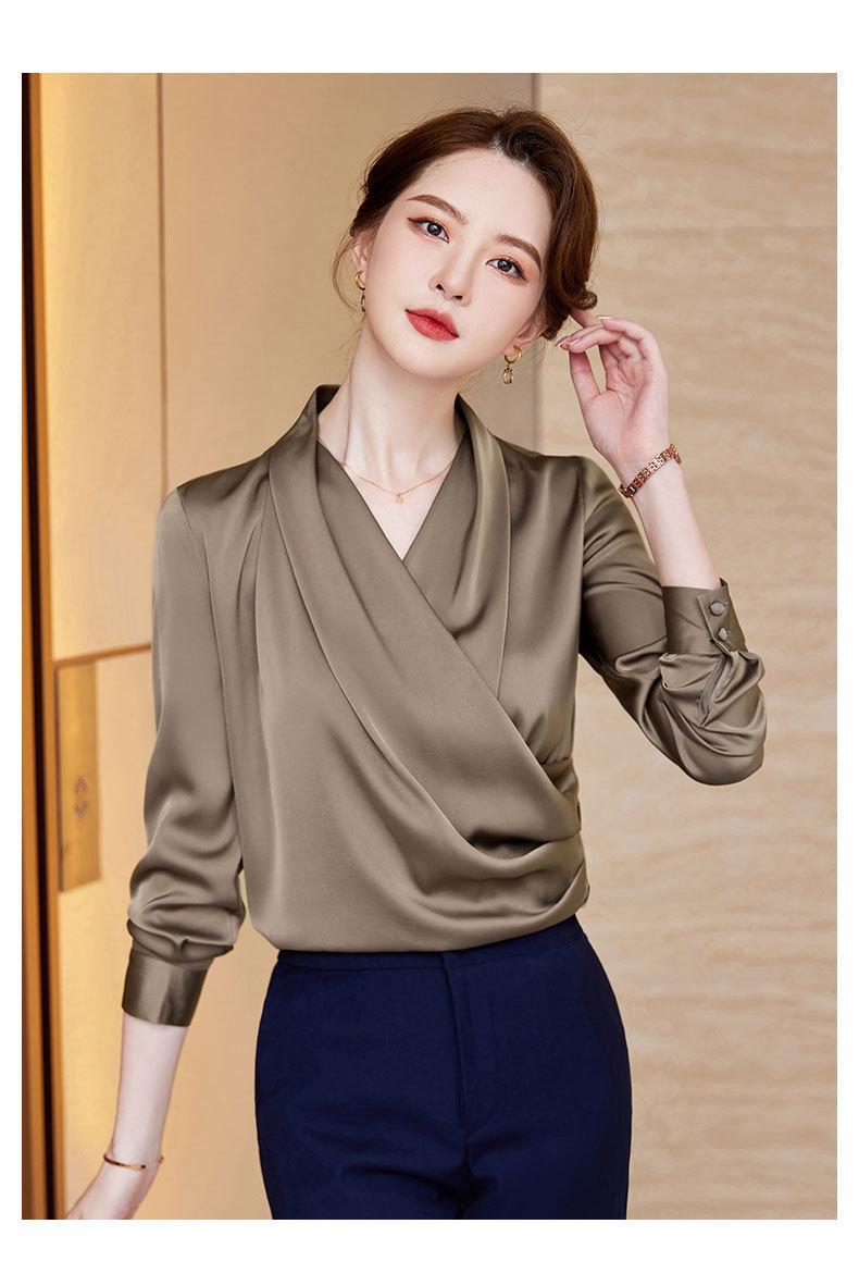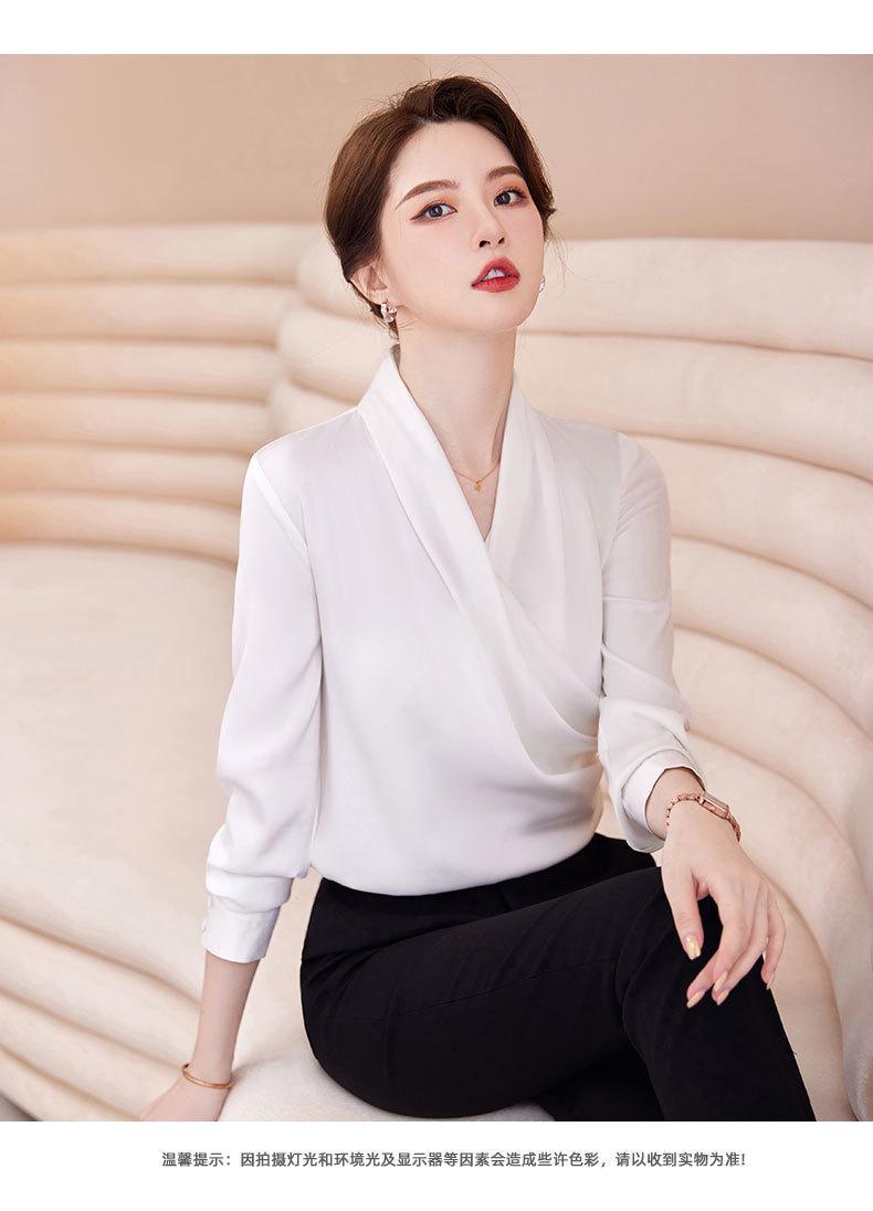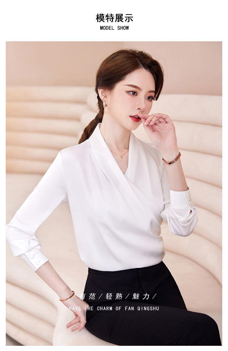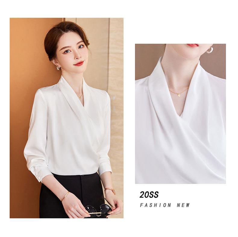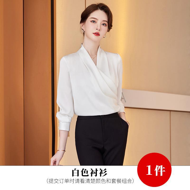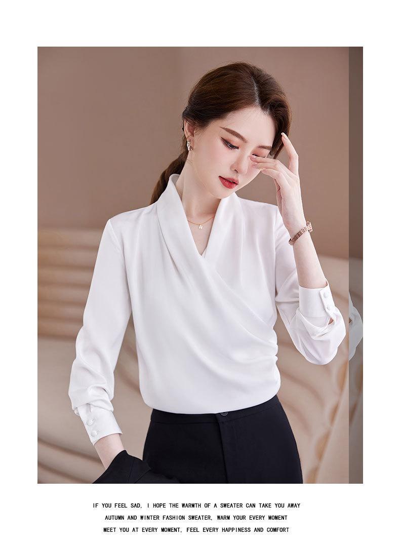 2023 봄과 가을 새로운 패션 긴팔 쉬폰 셔츠 여성용 가을 고기 덮인 디자인 틈새 페르시 V-넥 셔츠