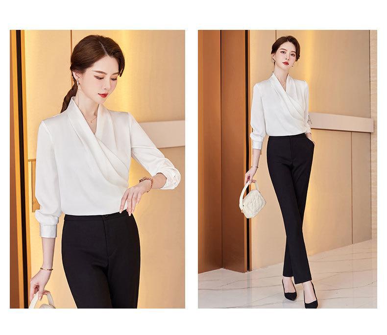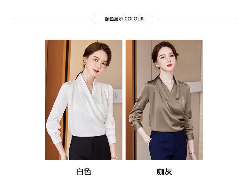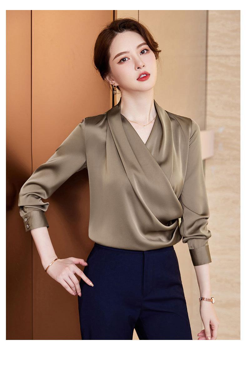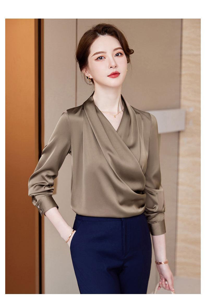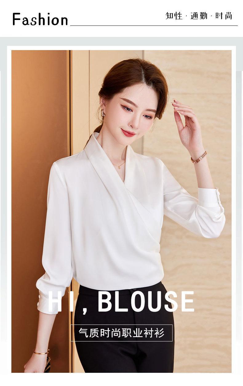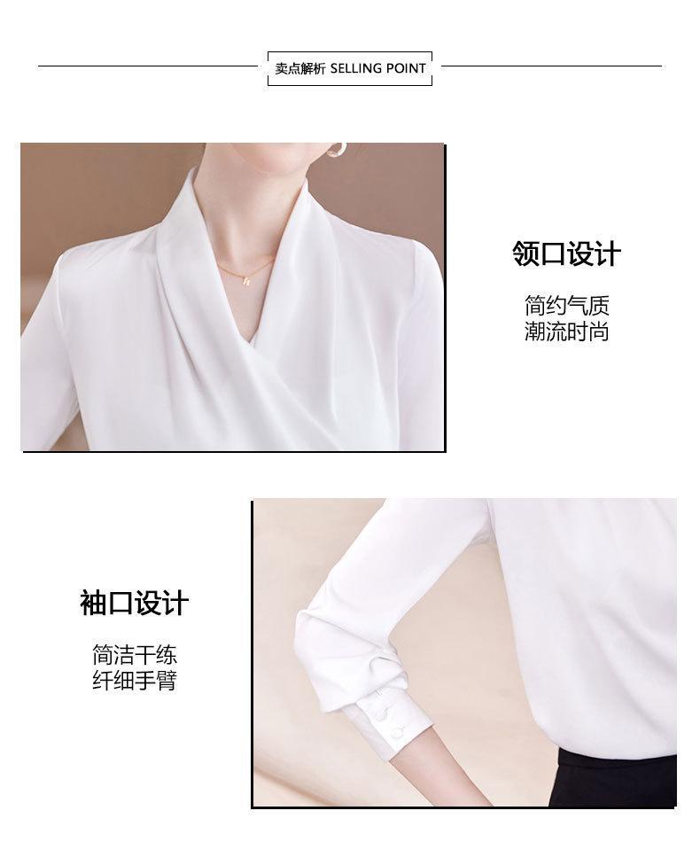 2023 봄과 가을 새로운 패션 긴팔 쉬폰 셔츠 여성용 가을 고기 덮인 디자인 틈새 페르시 V-넥 셔츠