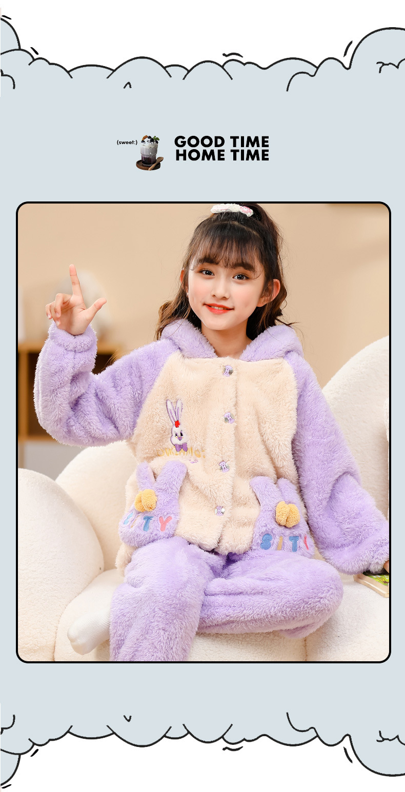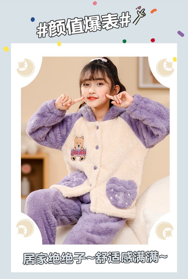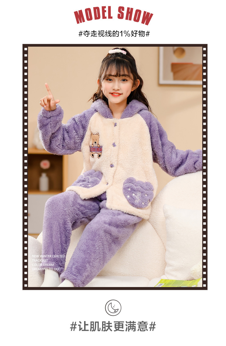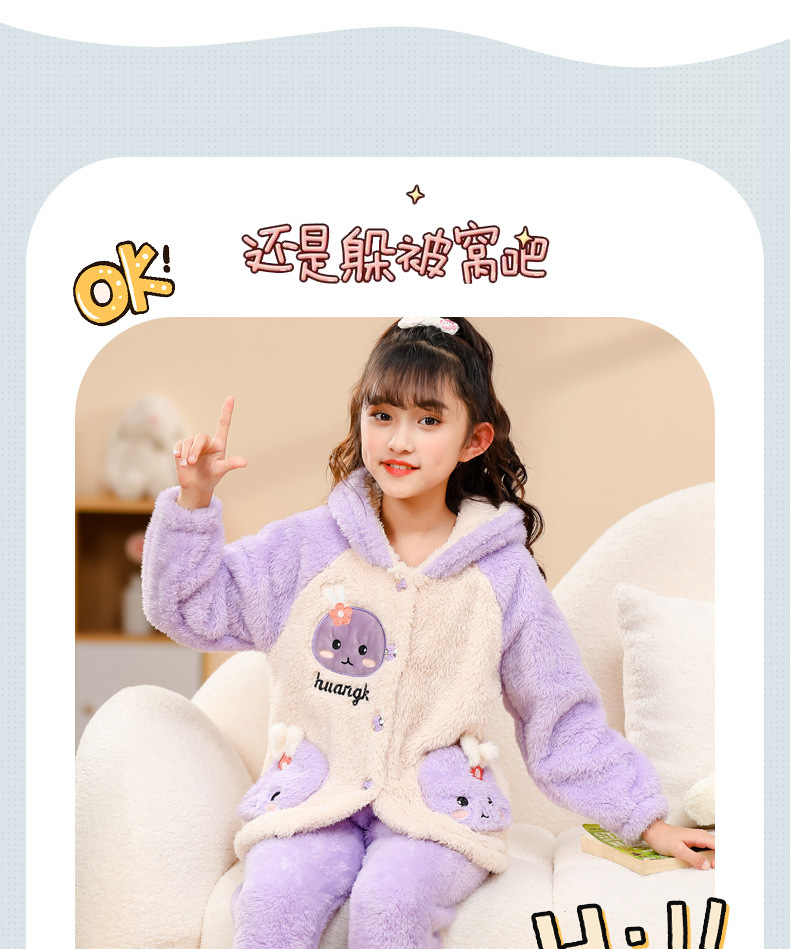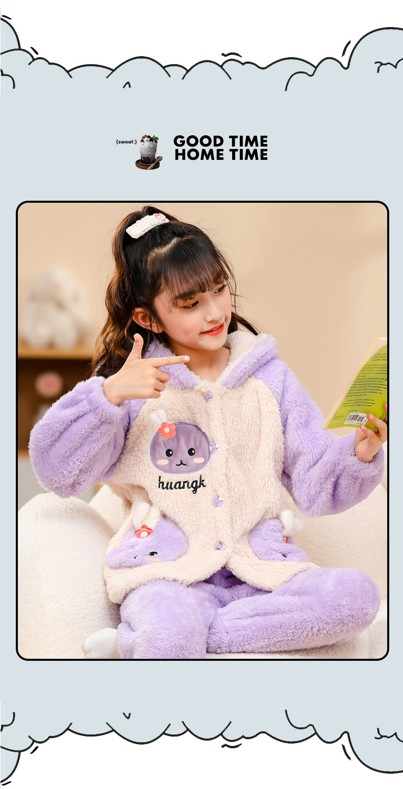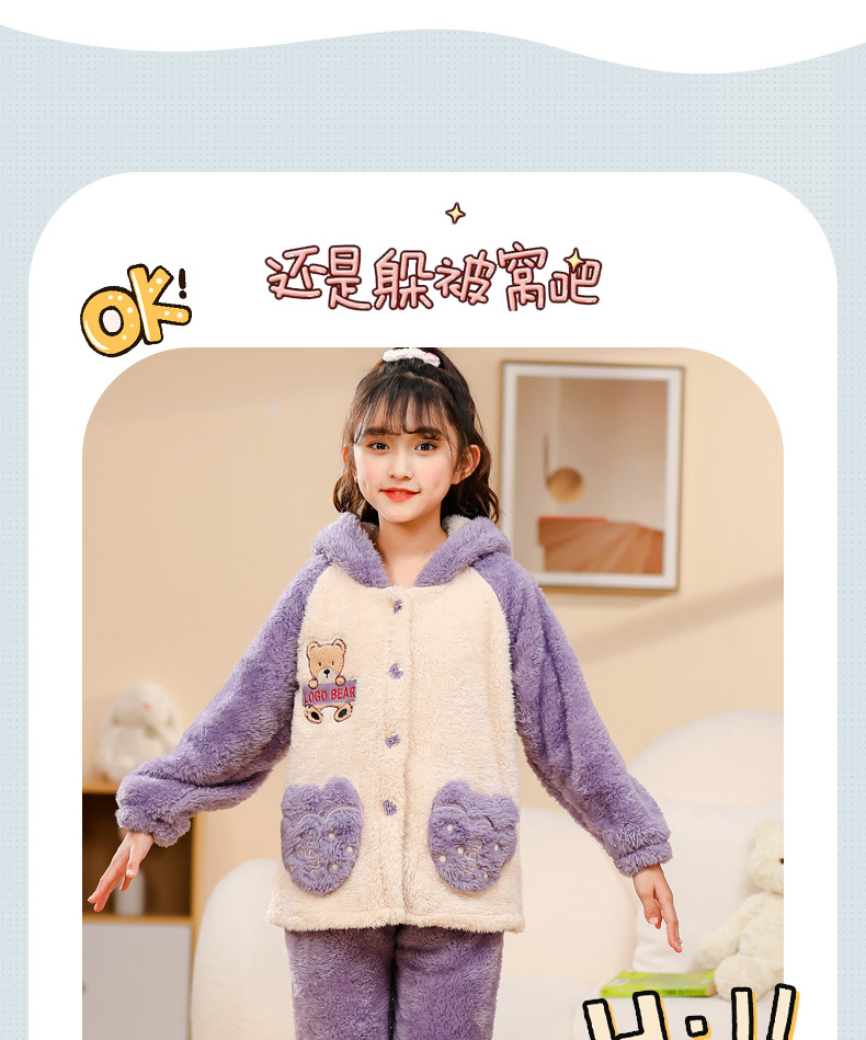 가을과 겨울 2023 두꺼운 플란넬 카디건 소녀의 후드 잠옷 3 세 14 세 소녀의 가정복스토어 가기