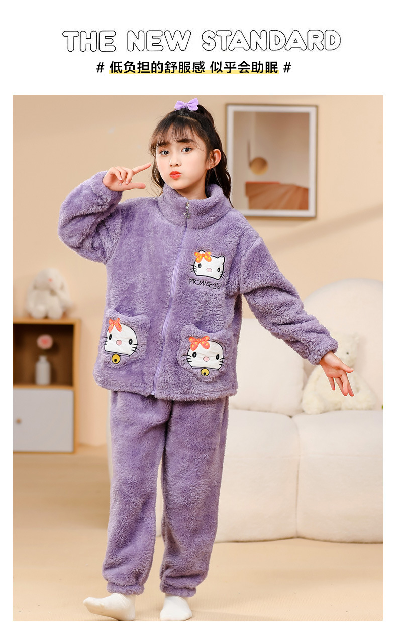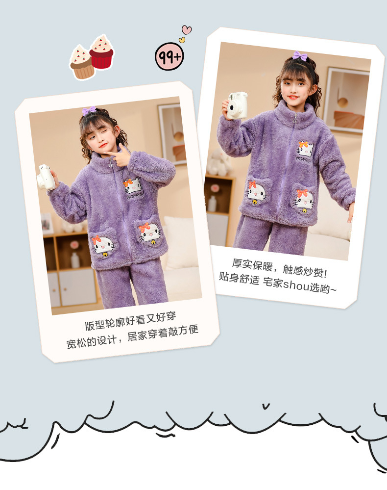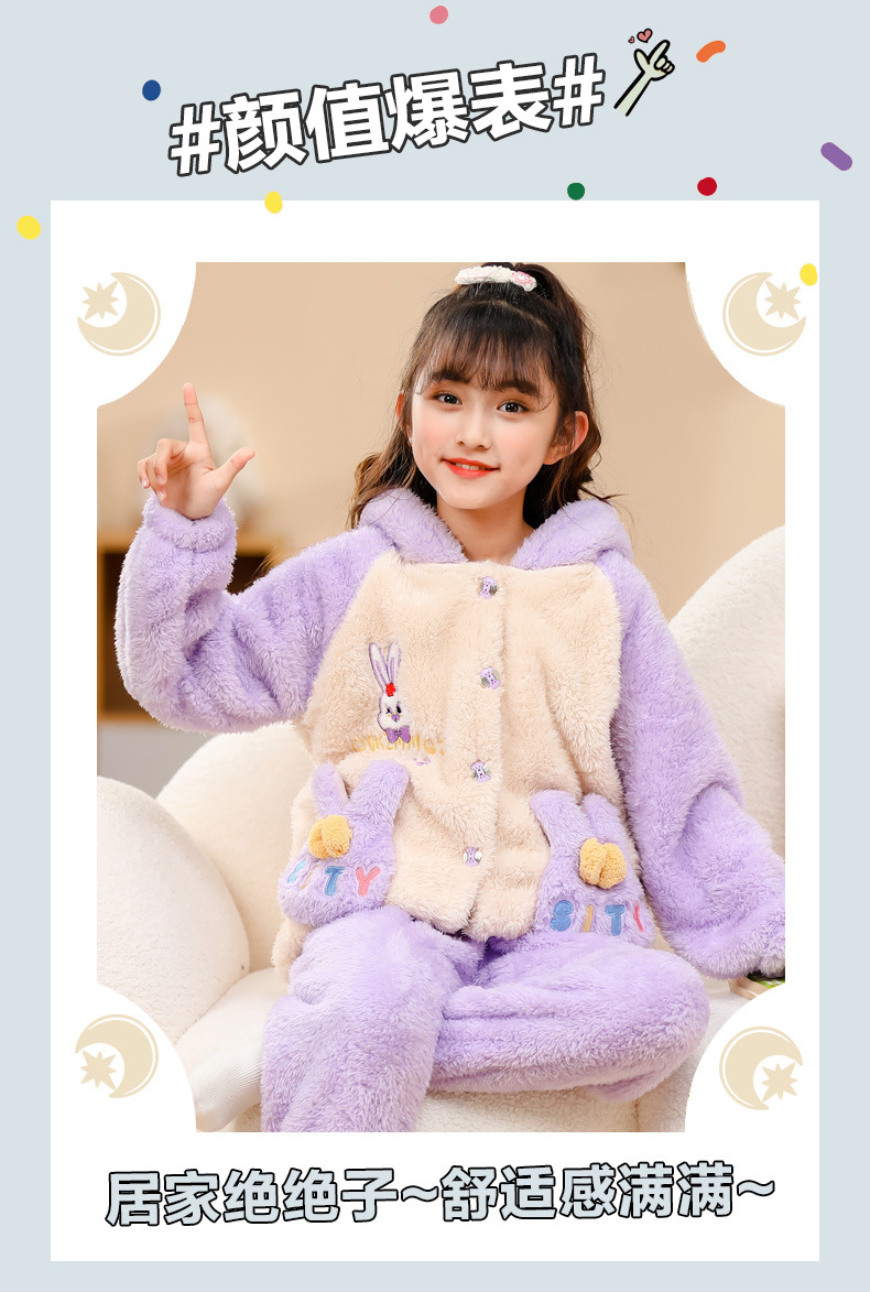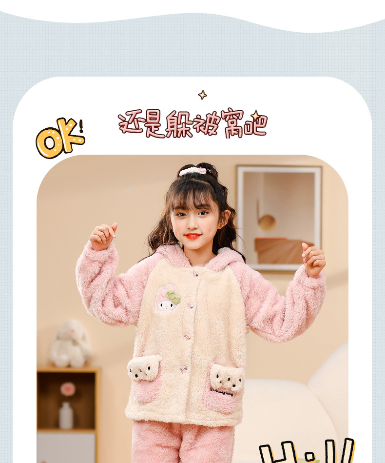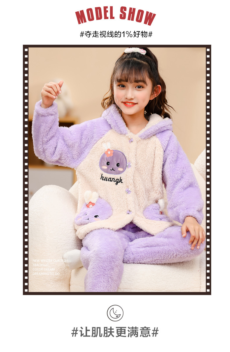 가을과 겨울 2023 두꺼운 플란넬 카디건 소녀의 후드 잠옷 3 세 14 세 소녀의 가정복스토어 가기