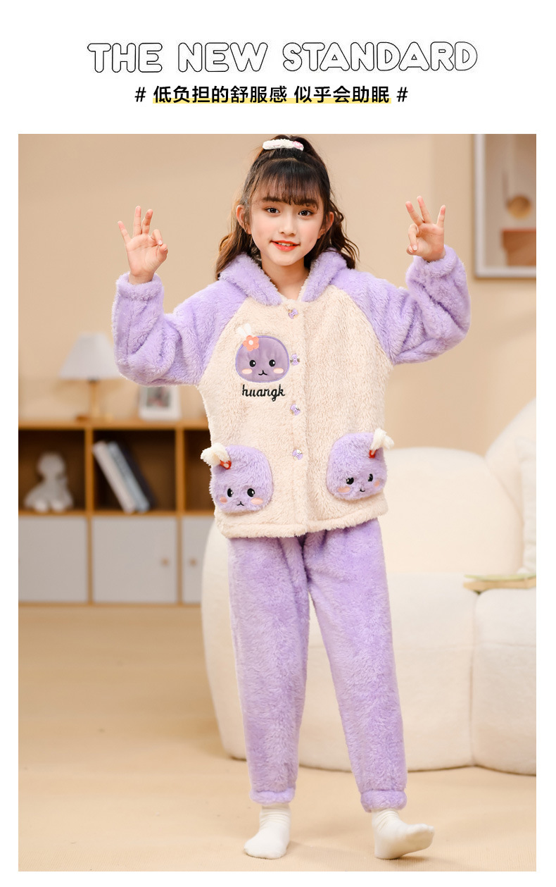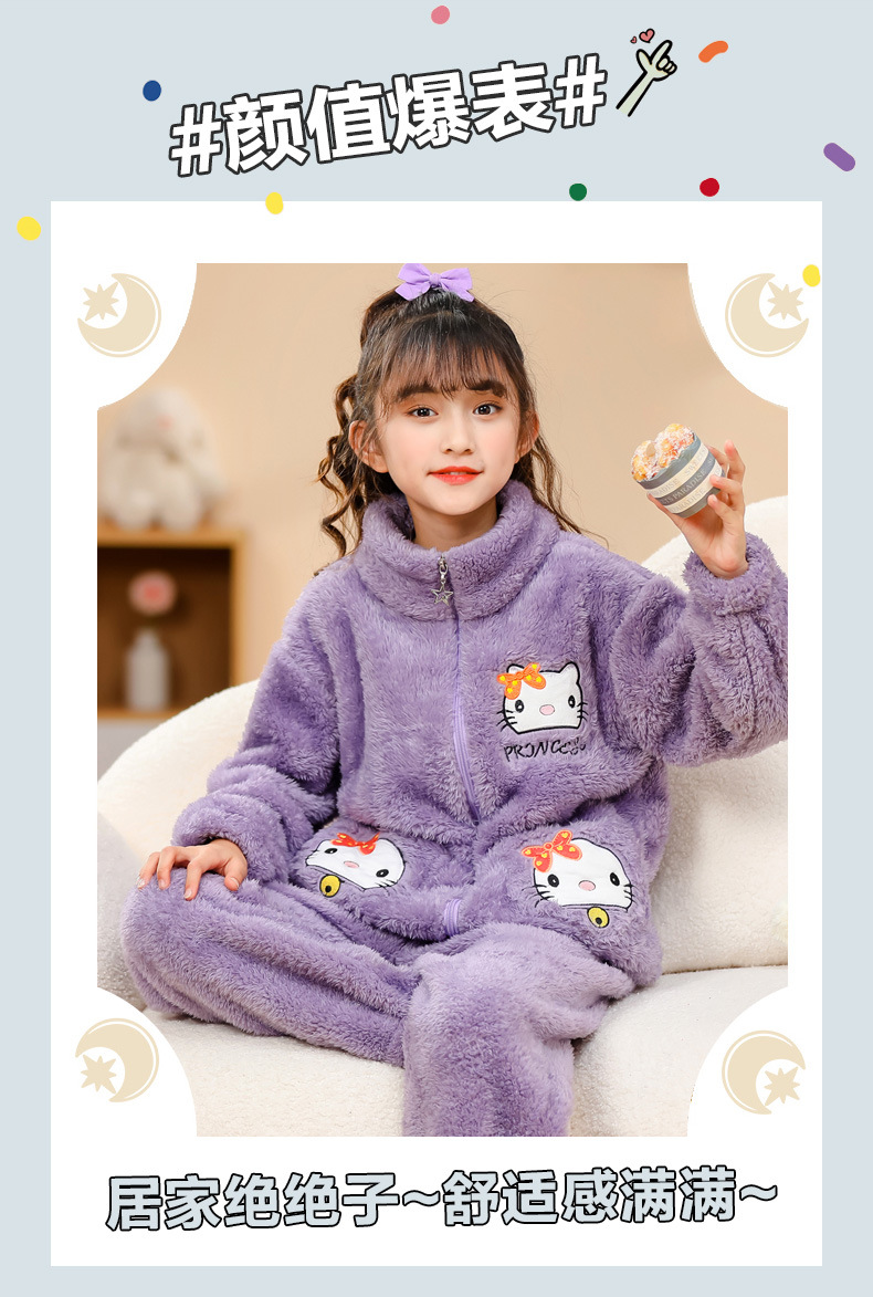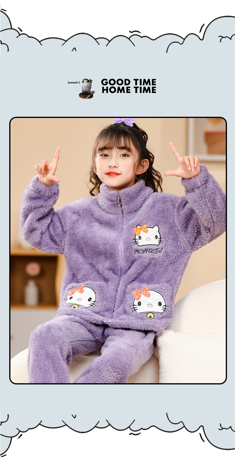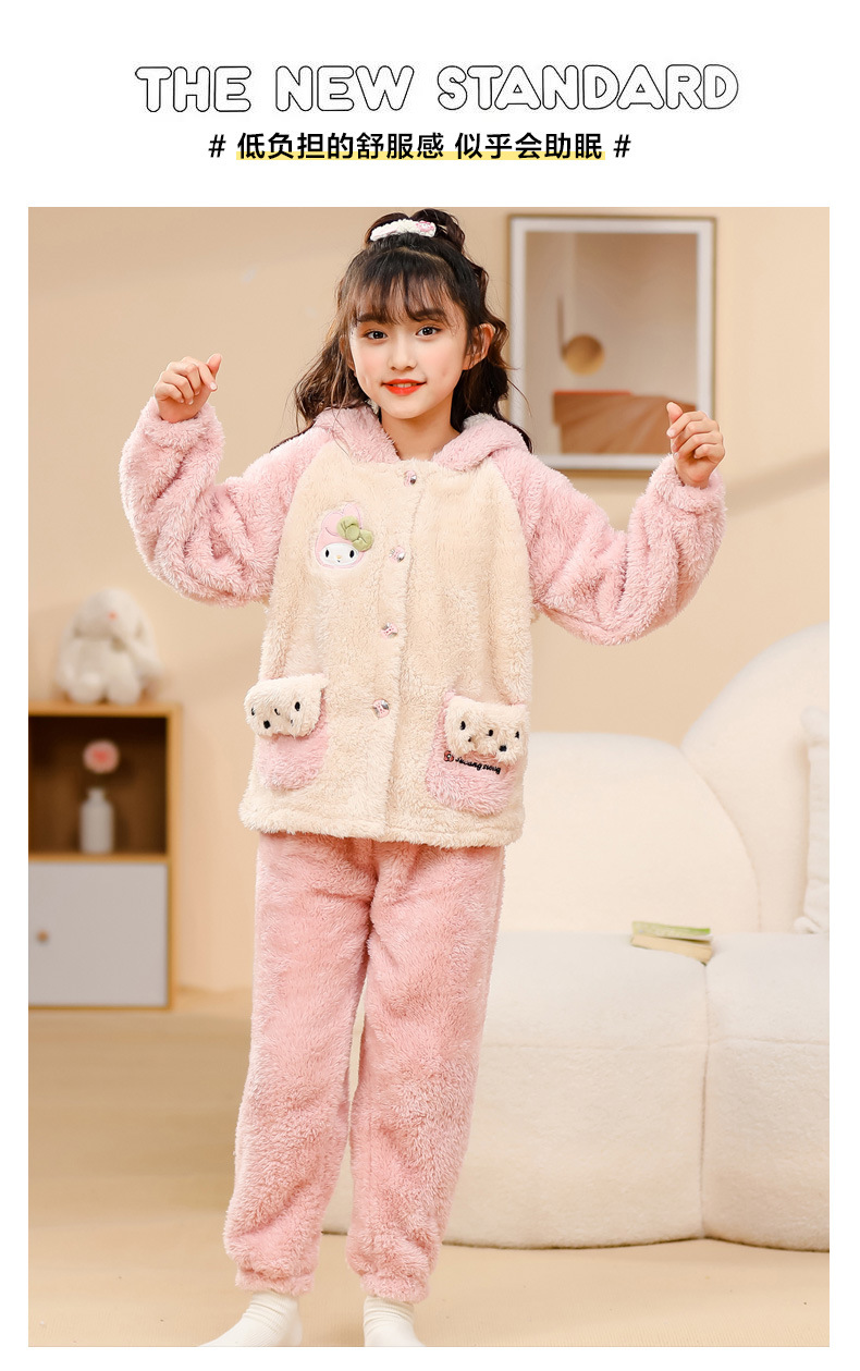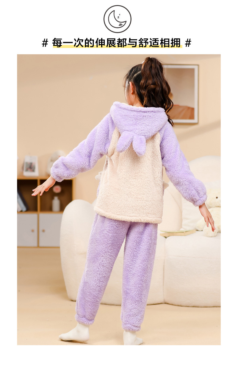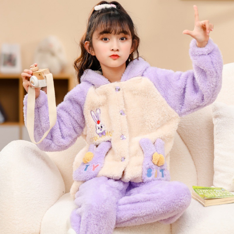 가을과 겨울 2023 두꺼운 플란넬 카디건 소녀의 후드 잠옷 3 세 14 세 소녀의 가정복스토어 가기