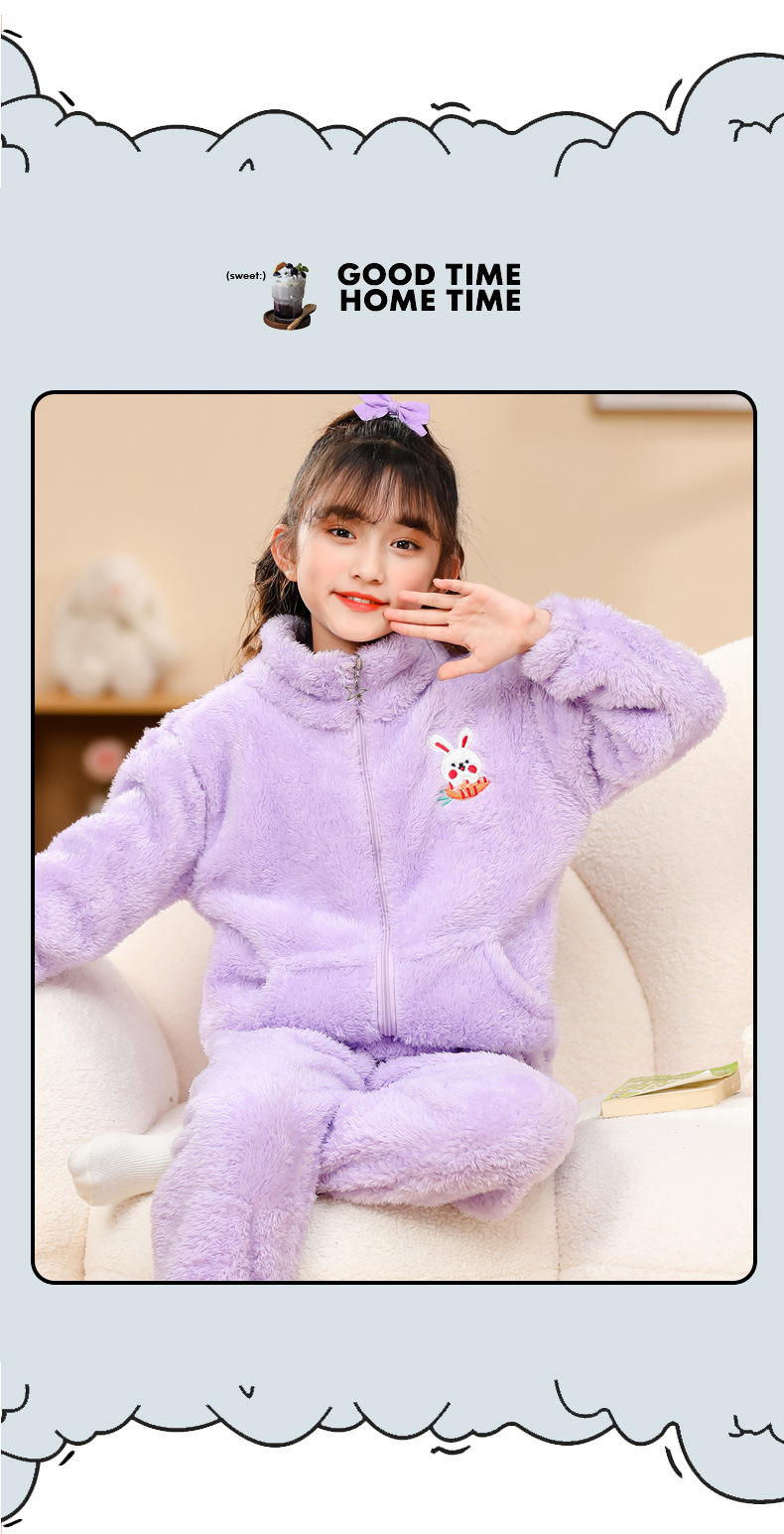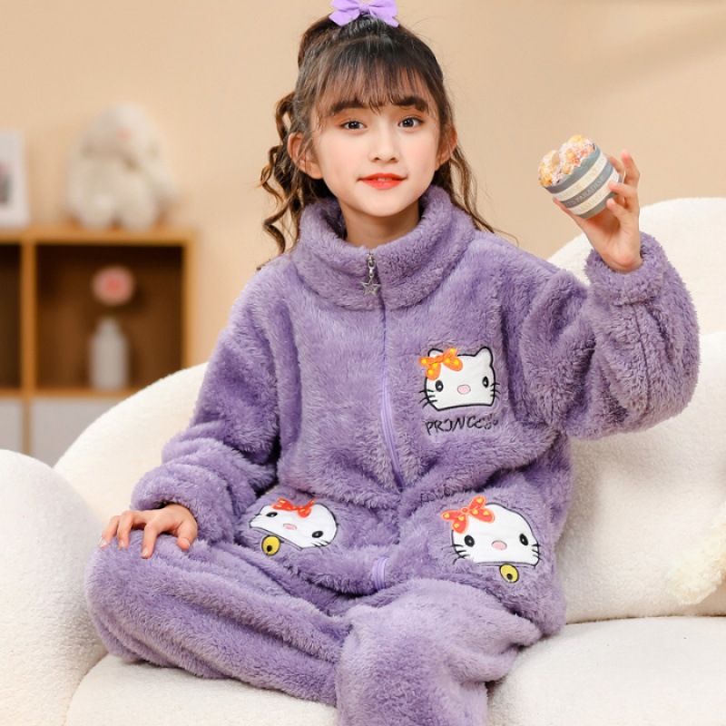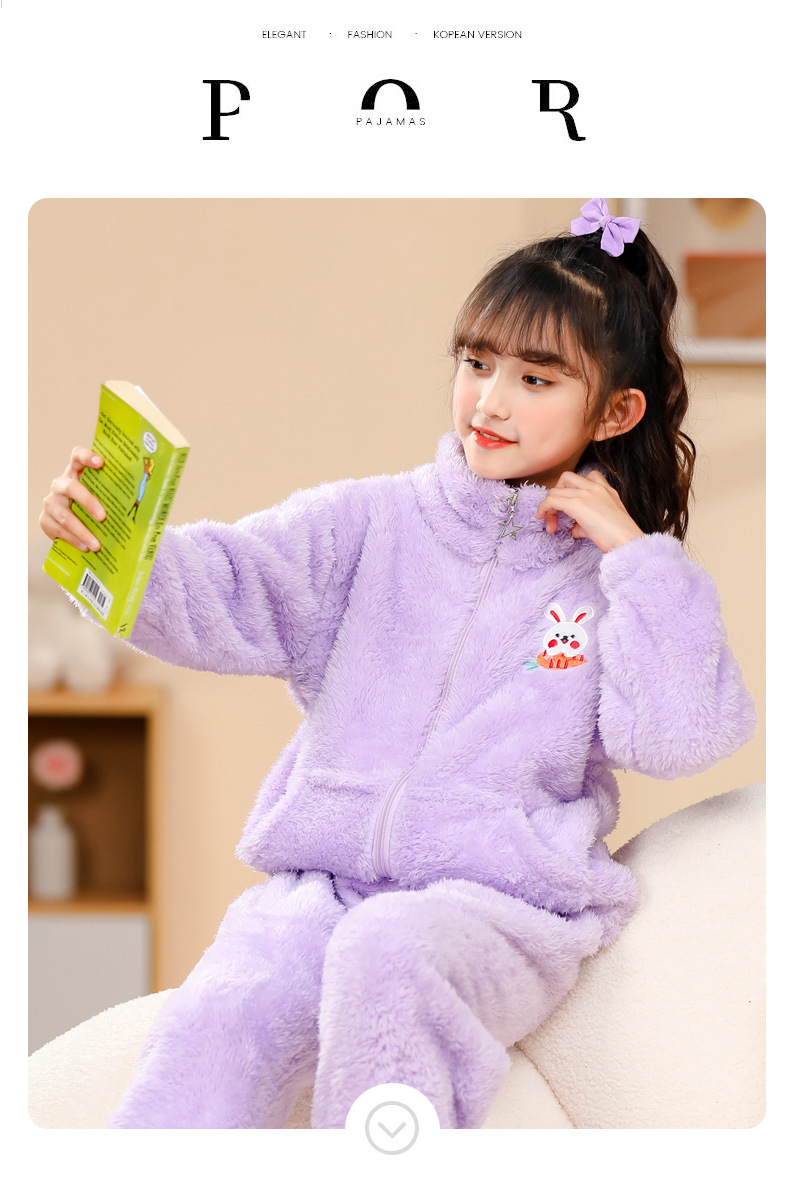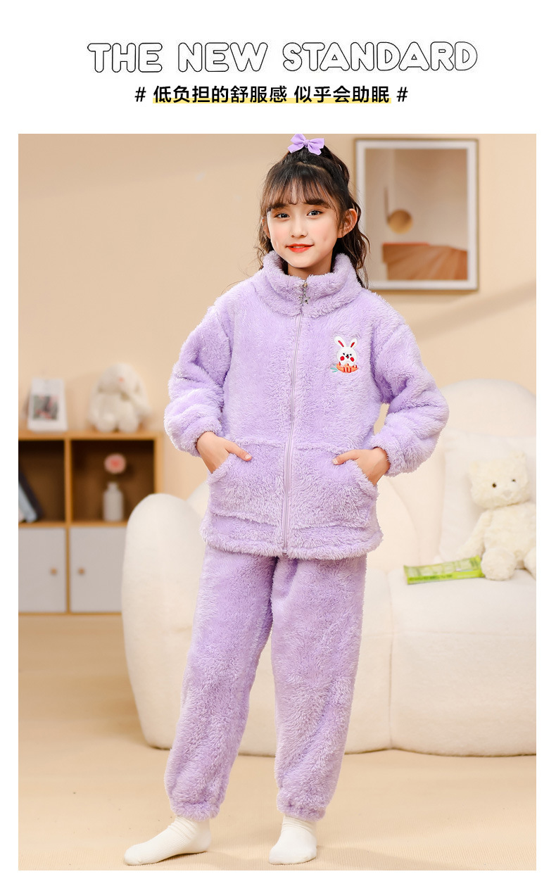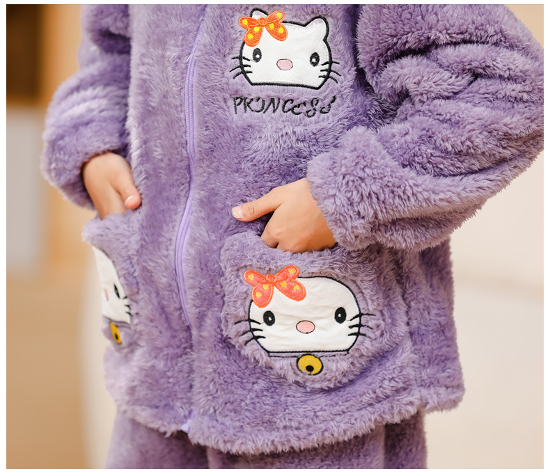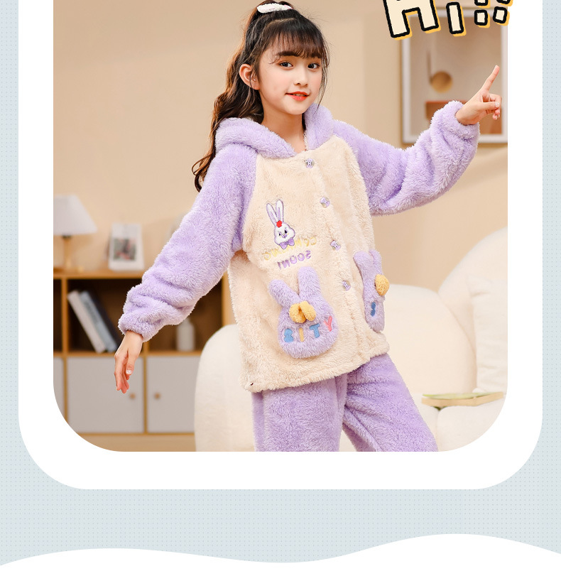 가을과 겨울 2023 두꺼운 플란넬 카디건 소녀의 후드 잠옷 3 세 14 세 소녀의 가정복스토어 가기