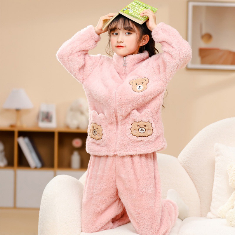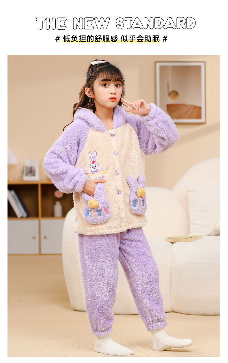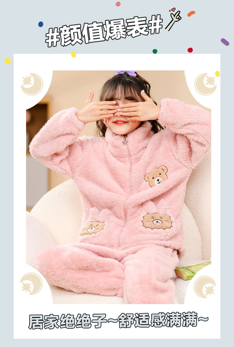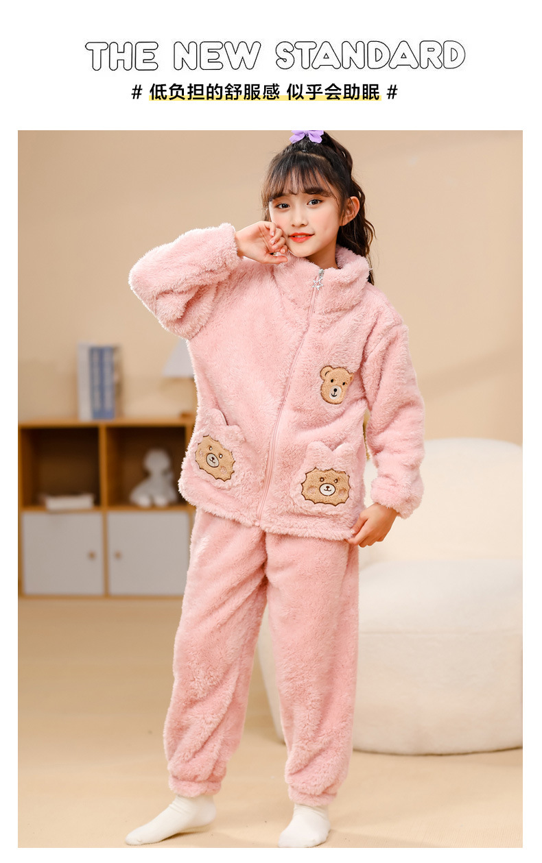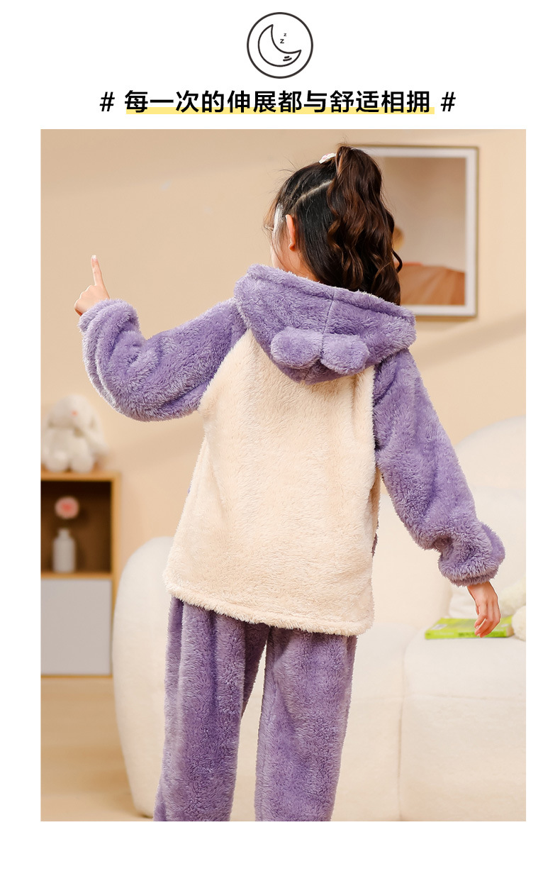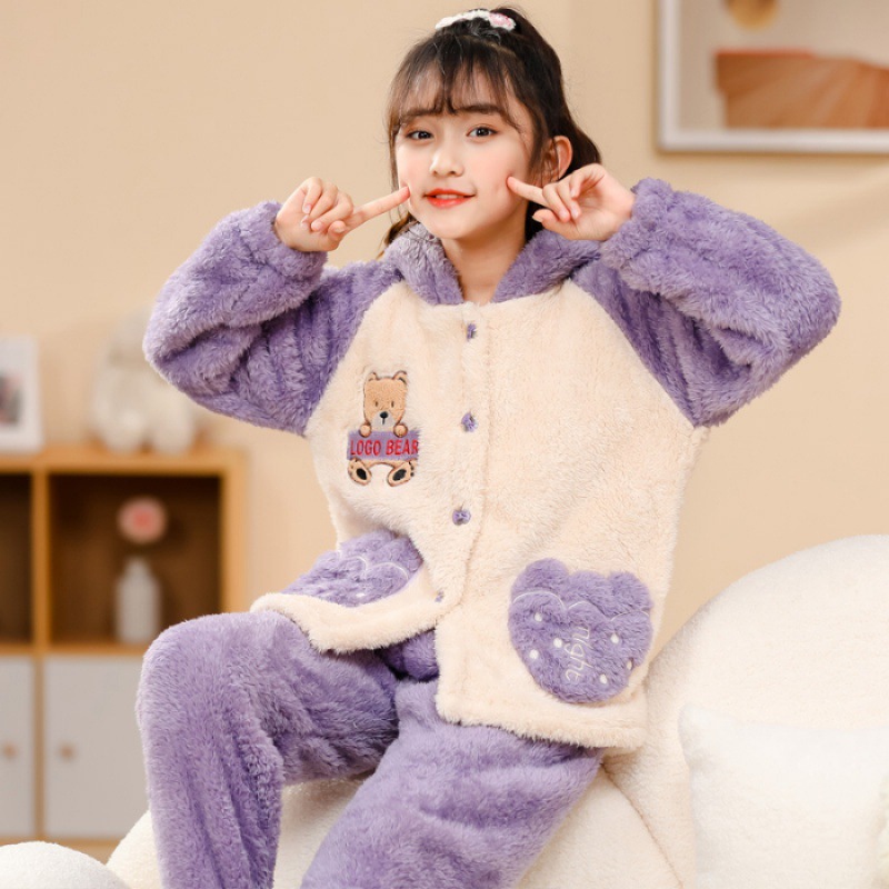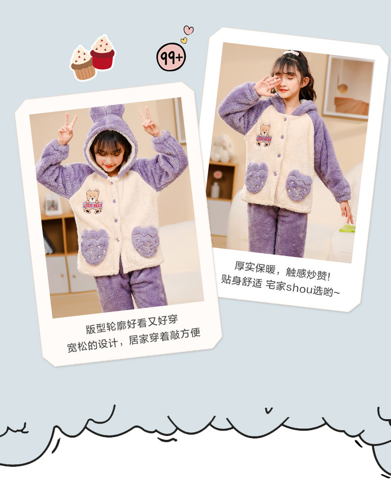 가을과 겨울 2023 두꺼운 플란넬 카디건 소녀의 후드 잠옷 3 세 14 세 소녀의 가정복